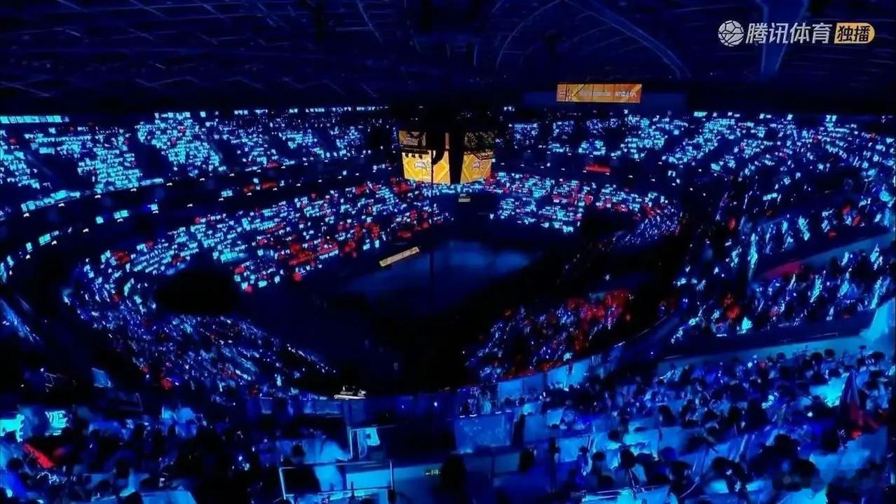 NBA名人赛现场,王俊凯、任嘉伦,两人的灯牌大战已经打响,蓝灯是王俊凯的应援灯,