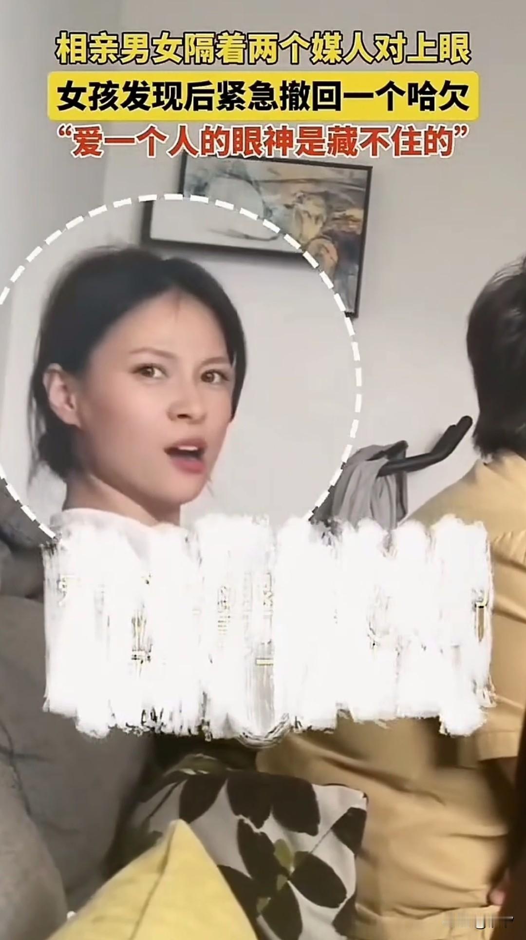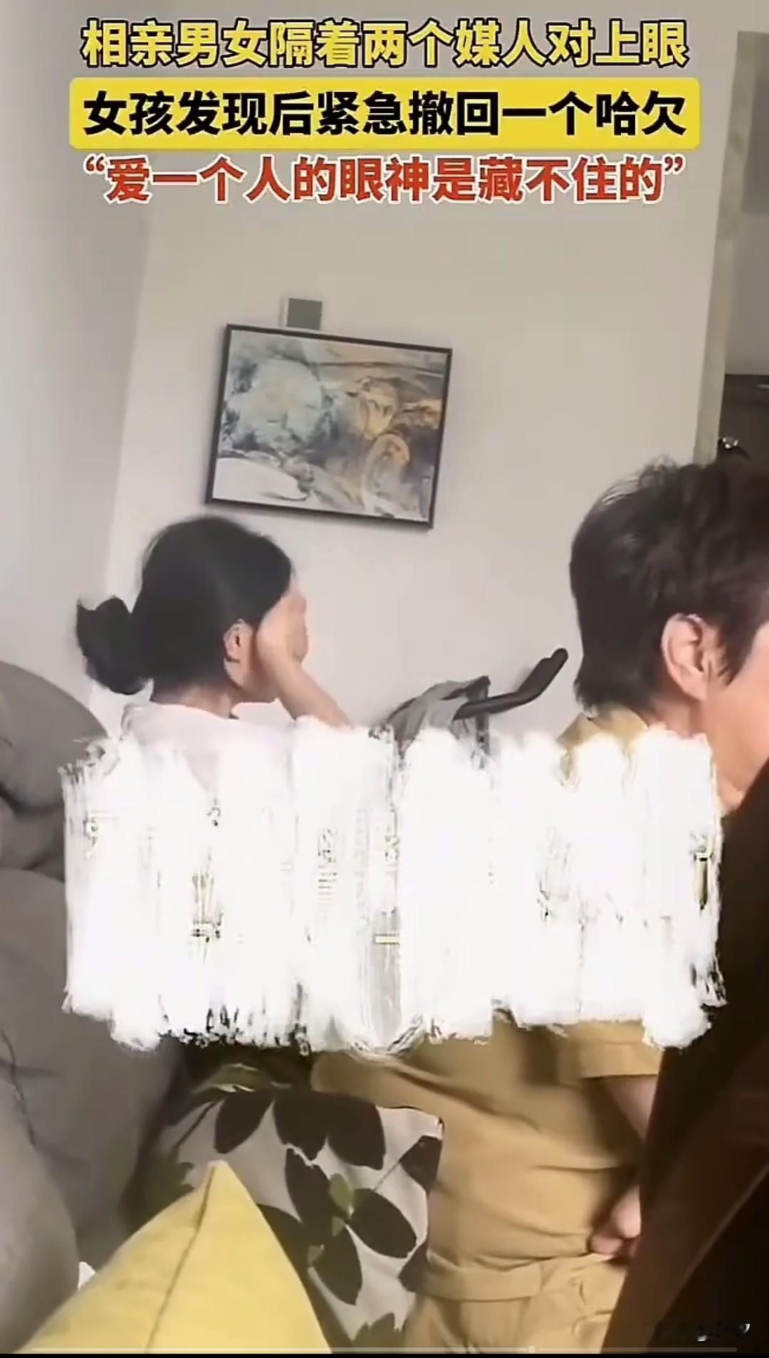 一女子家里来了相亲的对象, 她本来迷迷糊糊才睡醒, 被迫早起营业, 两位媒人正在聊对方的情况, 男子坐在沙发的另一边, 本来她还在打哈欠, 突然看向这边居然才知道相亲对象被带来了,那一瞬间瞬间眼睛亮了, 看来是看到帅哥了, 惺忪的眼神瞬间都精神了, 瞬间把哈欠收回去了, 喜欢一个人的眼神就是这样, 看得出来她被相亲对象吸引了, 随后她笑了出来, 不好意思捂着脸笑了出来, 隔着两个媒人也挡不住她喜欢对象的眼神,看来女孩这次相亲是稳了! 大家觉得女孩是不是相亲遇到了真爱? 相亲交友 聊聊相亲的经历 大龄姑娘相亲 相亲对象 相亲尴尬一幕 相亲女
