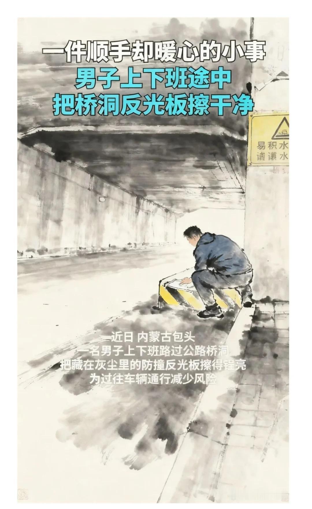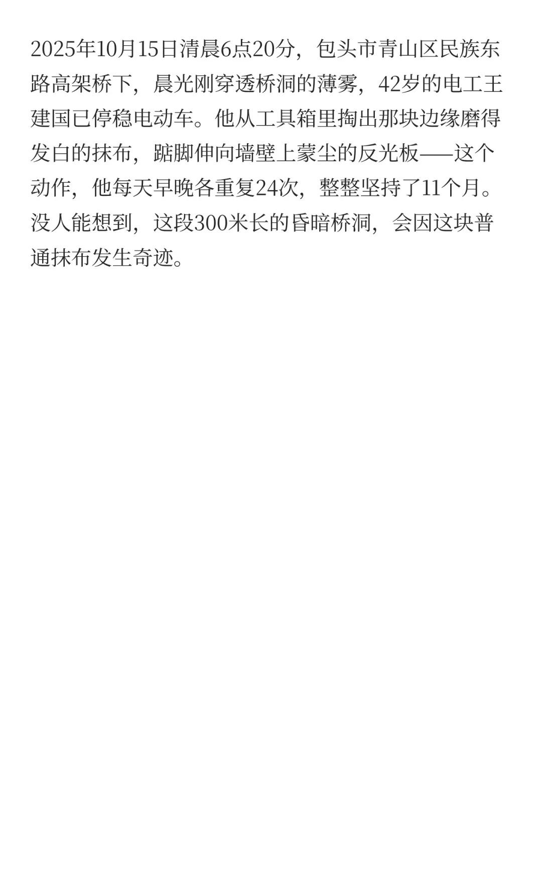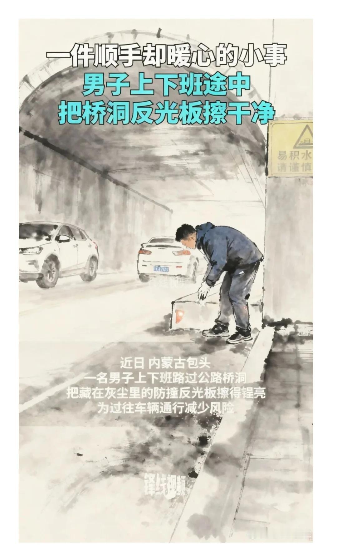 300米桥洞反光板被他擦亮后,事故率骤降80% 包头好人城市微光平凡英雄交