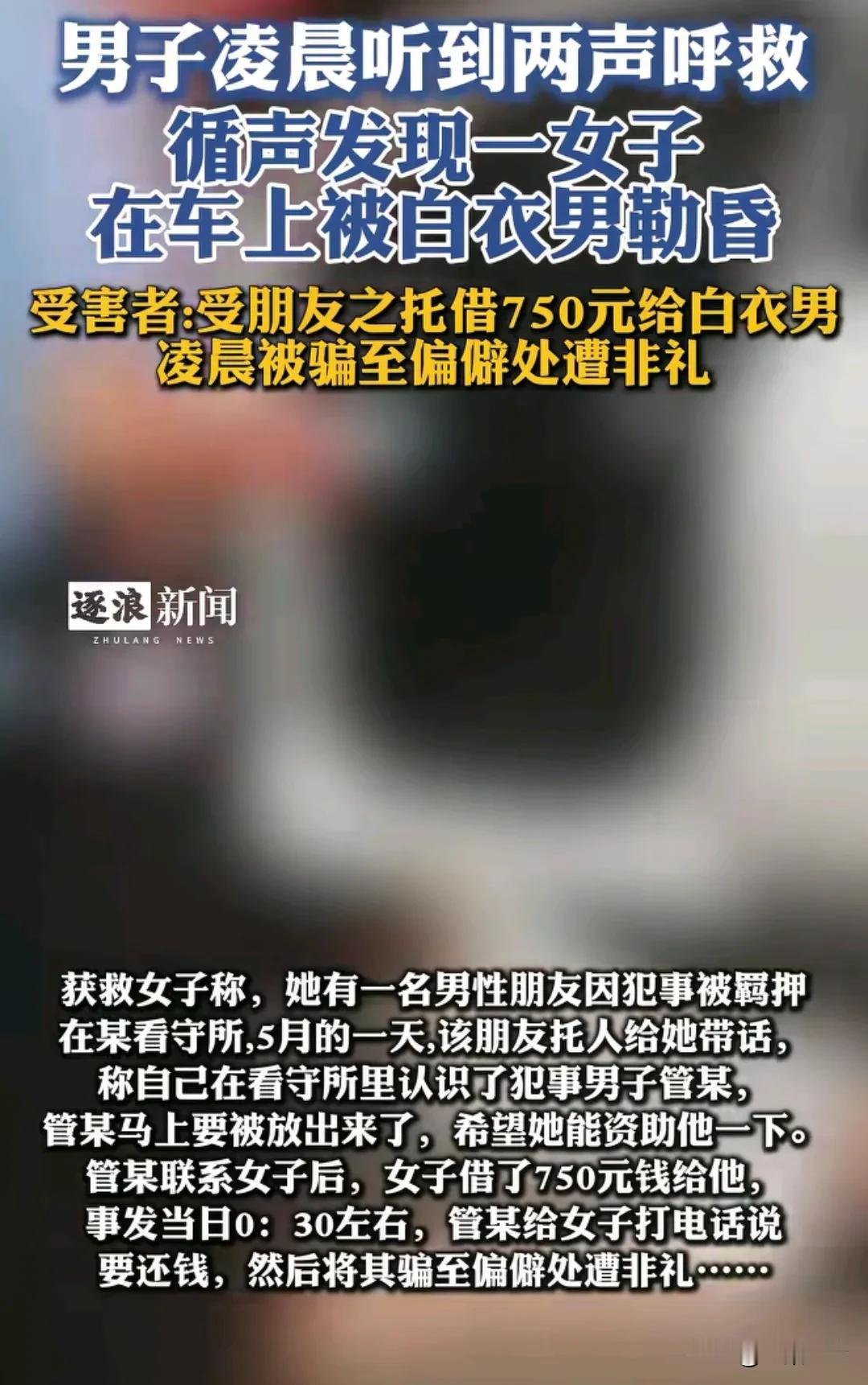 四川德阳,女子通过朋友认识一名犯事男子,他刚被放出来没有钱,女子就借了750元给他,在一个深夜,男子说要还钱给女子,便约女子出来,结果女子一来到相约地点,男子就一把搂抱着她,还想亲她,女子反抗,男子就勒住她的脖子,就在女子窒息时,一个男子出现了。 回想起这件事情,薛芯(化名)就心有余悸,依然感到很恐惧,她没想到自己一片好心,差一点就断送了自己的生命。 说起这件事情,她只怪自己太善良了,当时她有一个朋友犯事被羁押在看守所,这个朋友在那里面认识了管某,可能是相处得很好,这个朋友看着管某就要出去了,又没有钱,他想起薛芯,是个热心肠的人,肯定会帮这个忙的。 这个朋友就托人给薛芯带话,让她帮一下这个管某,薛芯也将此事放在心上了,就等待管某联系她。 果然没过多久,这个管某就联系她了,虽然不认识管某,但既然是朋友让她帮忙,她还是和这个管某见面了,一见面这个管某就说要买手机,要借550元。 薛芯看着管某借的钱也不是很多,这550元对她来说,就是小钱,她毫不犹豫地借了,看着这个管某,刚出来没有工作,又没有钱,她还同情这个管某,又多借了200元给她,管某也是一个劲地感激她,说要尽快把钱还给她。 薛芯并没有将此事放在心上,她纯粹就是在帮朋友的忙,并没有想过要和这个管某有什么交集。 她从来没有想过这个管某会对她有非分之想,甚至没有想过会很快见到管某。 事情的发展很蹊跷,6月4日那天,凌晨12点半,管某竟然联系她,说要还钱给她。 这么晚了,薛芯有点担心,但考虑到自己是好心帮忙,她也没有想过管某会对她怎样,所以就开着她的奔驰车出去了。 结果,管某和她相约的地方,是一个很偏僻的路段,但她看到管某一脸微笑的样子,又看着不远处的有楼房,周围也有灯光,她依然没在意。 管某也不客气,坐上了她的副驾驶,要加她为好友,结果不但加不上,管某还一把搂住她,要亲她。 薛芯这才意识到,危险正向她袭来,她只是好心帮这个管某而已,她对这个管某没有半点好感,她当然抗拒。 她以为自己拒绝就可以了,结果这个管某下手非常狠,看到薛芯不同意,不但把她手机抢了过来,还一把勒住她的脖子。 瞬间一阵窒息感传来,薛芯非常害怕,本能地喊出了救声,可她喊了两声,就晕了过去,什么都不知道了。 如果这个时候没有人听到她的呼喊声,薛芯可能真的遭遇了不测。 幸好在这个时候,钟鸣明听到了呼喊声,他也是一个热心肠的人,他马上打开窗户看,结果没看到什么异常,正好这时又听到了呼喊声。 他知道楼下肯定有事情发生,所以就去查看,结果在一处围挡,他发现了薛芯正在被管某勒住脖子。 他看着薛芯已经失去意识,他很快意识到,如果他不赶紧救人,薛芯就要遭遇不测了,幸好他机智,不但拍摄取证,甚至拿手机大声说出车牌号,管某以为他报警了,这才赶紧逃跑,薛芯这才得救。 当薛芯苏醒过来,看到钟鸣明守在她身边,她热泪盈眶,对着民警含泪说出自己的经历,她非常感激钟鸣明,她知道,如果不是钟鸣明,她早就没命了。 那么如何认定这件事情呢? 薛芯借钱给管某,管某是应当返还给薛欣的,管某却起了歹心,想亲薛芯,这已经构成猥亵行为。 《治安管理处罚法》第44条规定:猥亵他人的,或者在公共场所故意裸露身体,情节恶劣的,处5日以上10日以下拘留。 如果管某只是这个行为而已,一般只是违法行为。 但是管某下手又狠又准,勒住薛芯的脖子,让她窒息,这行为显然已经构成了故意杀人罪。 《刑法》第232条规定:故意杀人的,处死刑、无期徒刑或者10年以上有期徒刑;情节较轻的,处3年以上10年以下有期徒刑。 从当时的情况来看,如果钟鸣明没有及时出现,薛芯真的是很危险的。 钟鸣明救了薛芯,在当时的情况下,他其实也挺危险的,但是他临危不乱,救了薛芯,他的行为应当认定为见义勇为。 那么你对薛芯的遭遇有何看法呢?