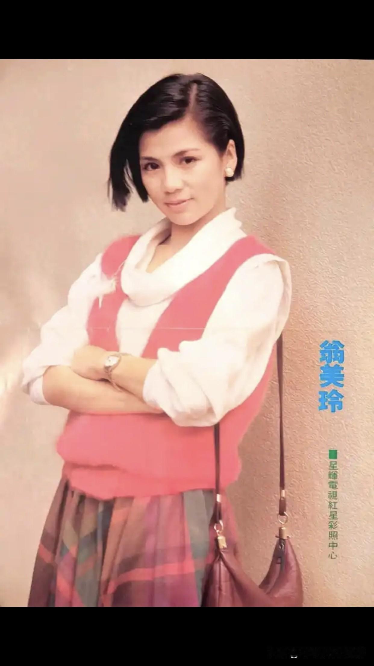 背着包包的翁美玲👜 80年代的她用它搭配粉马甲与格纹裙,把学院风与港味糅得恰到