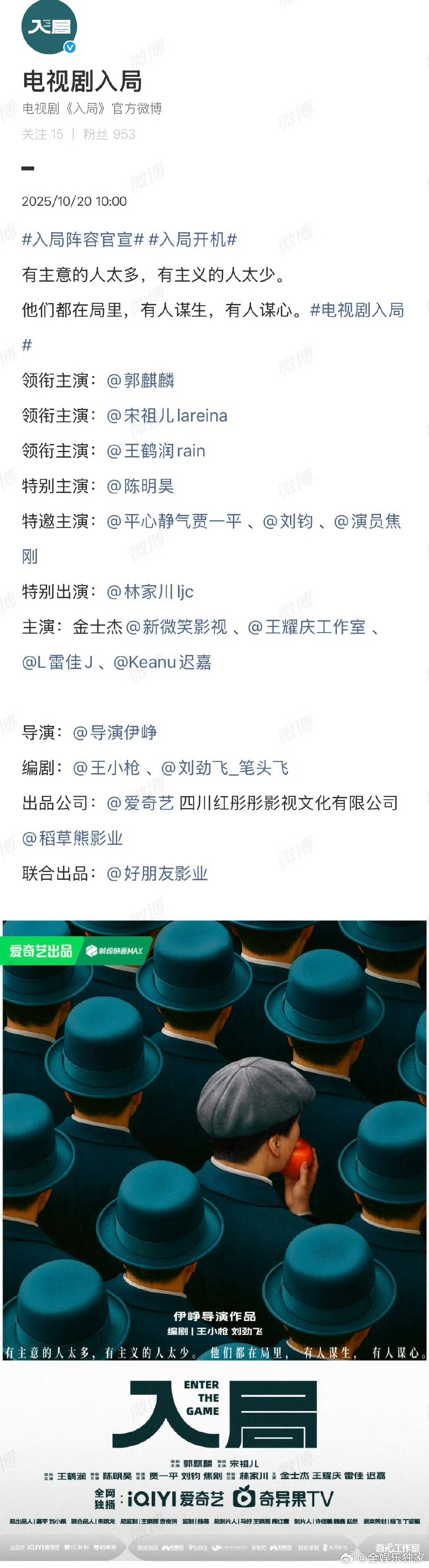 郭麒麟入局一番宋祖儿入局二番这部开机了😯大男主谍战 宋祖儿二番 恭喜宋祖儿即将进谍战新组入局,回归后资源稳步上升 入局阵容官宣