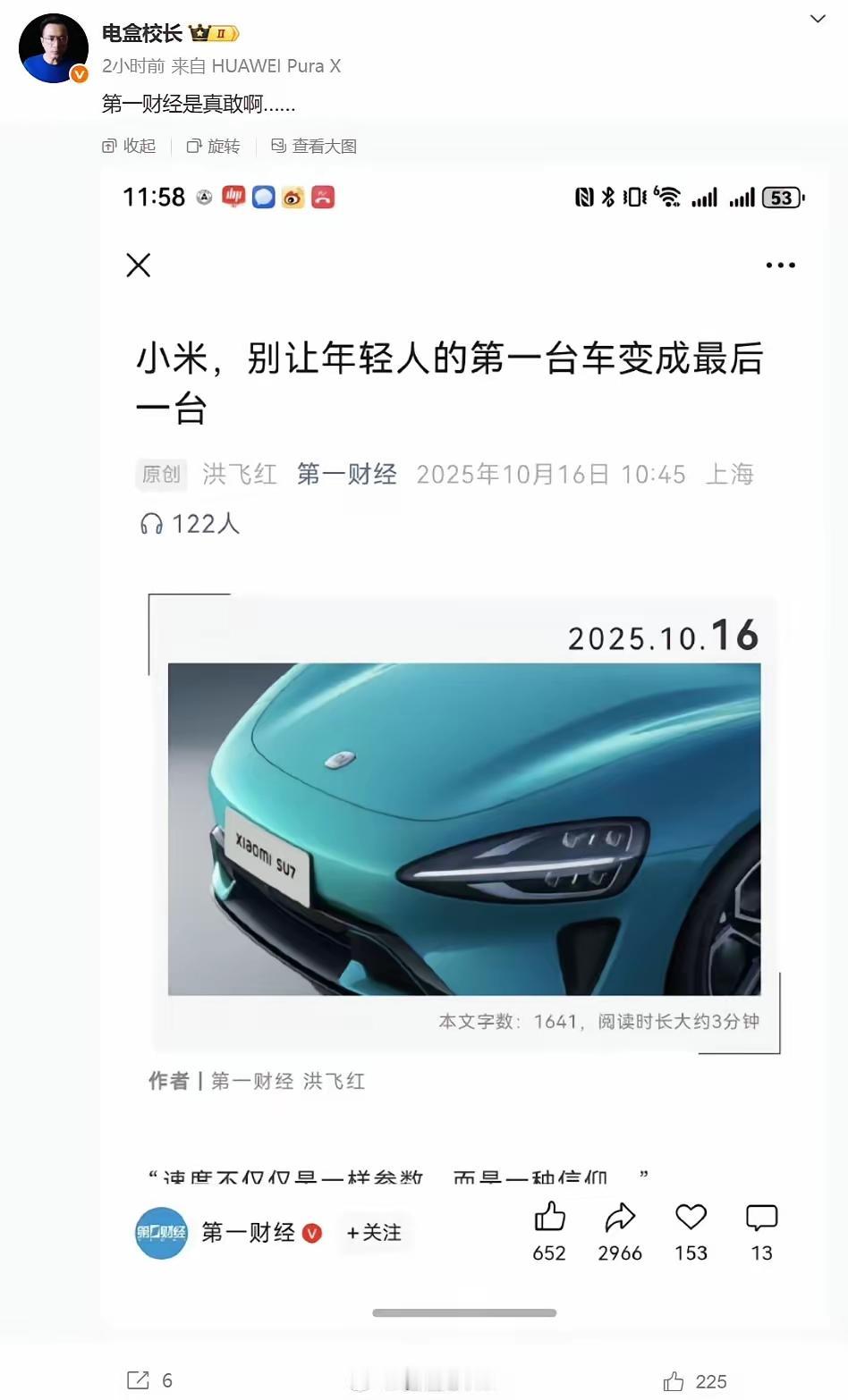 小米的公关现在…… 也不知道小米是怎么了,能搞到这么一大波流量,但是这个流量小米汽车肯定也是不想要的,关键是看的人还挺多的。 发现传统媒体的笔杆子还是非常的厉害呀,其实他文章里面全部都是在说明事件,没有加入自己的主观,但是标题就相当的主观了。 网友评论: 其实我想说,年轻人的第一台车不应该买电车,无论是小米还是迪子或者烂菊花,新手真的很难控制住自己的脚 黑公关应该是指的这个。在抖音上也看到非常多的个人用户发小米汽车的这个事情。更多是车主吧。 打卡今日小感悟 让我们一起聊聊小米汽车