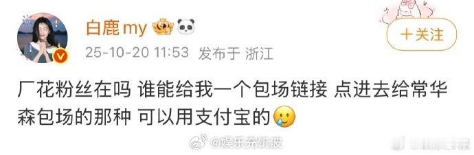 白鹿在线求厂花包场链接白鹿要给常华森新剧包场,可就是不知道链接咋弄,这俩合作过《