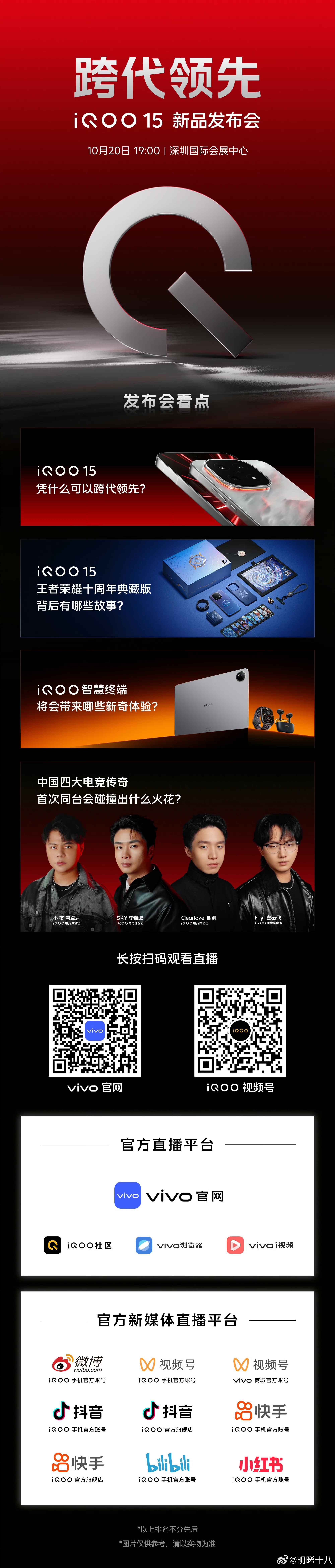 今晚七点,iQOO 15 震撼登场,各位彦祖接下来的游戏用机就靠它了。