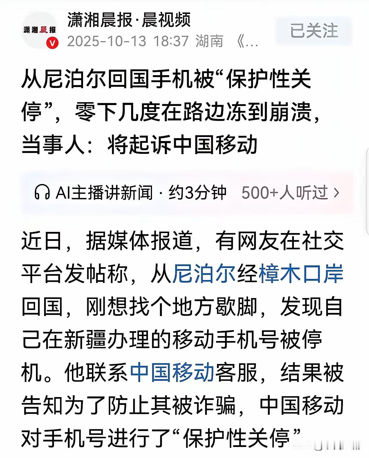 在凛冽的冬日里,一名男子从尼泊尔归国,满心盼望着与家人团聚。然而,刚迈进家门,他的手机便骤然没了信号。起初,他以为是欠费所致,赶忙充了200元话费,可手机依旧毫无反应。这接连的突发状况,令他陷入了迷茫与焦虑。 他即刻拨打移动客服求助,却得知自己的手机号已被“保护性关停”。客服解释道,这是为防止他遭遇诈骗、避免个人信息被盗用。为了“安全起见”,他的号码必须前往营业厅办理解封手续,方可重新开机使用。听闻此消息,他心里一紧——此时正值零下几度的寒冬,他身无分文,又身处异乡,等待解封的时光仿佛变得格外漫长。 男子心情沉重且复杂。一方面,他担忧手机无法使用会影响与家人的联络;另一方面,他对这种“保护性关停”的做法感到费解甚至恼怒。难以想象,自己在异国漂泊归来,竟立刻陷入这般困境,手机信号俨然成了他与外界的唯一纽带。没了手机,他好似被孤立于这陌生的环境中,身无分文、寒风凛冽的街头让他感到从未有过的无助。 更让人难以接受的是,面对他的请求,客服人员并未提供更便捷的解决办法,只是机械地告知他必须亲自前往营业厅办理。此时,他身上仅剩下些许零钱,手指冻得僵硬,衣衫单薄,根本无法忍受在零下的气温中长久等待。 此事凸显了部分运营商在服务细节上的欠缺。对于刚回国、身处异乡且急需联系家人的用户来说,手机不只是通信工具,更是生命线。突如其来的停机,尤其是在未提前通知的情况下,极易引发焦虑与不安。而“保护性关停”这类措施,若没有配套的便捷解封渠道,反倒会带来更大的麻烦。 这位男子的遭遇引人深思。运营商在保障用户安全的同时,应提供更具人性化和便捷性的服务举措。比如,设立紧急解封渠道,提供线上办理等方式,避免用户在极端天气和困境中陷入更大的麻烦。毕竟,科技的终极目标是让生活更便利,而非成为新的阻碍。 在这个信息飞速发展的时代,服务细节尤为关键。期望类似事件能引起相关企业的重视,让每位用户在需要时都能得到及时、便捷的帮助,避免无谓的苦难与折磨。