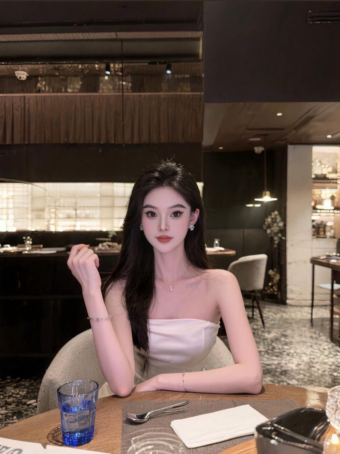 优雅白裙,漫步在古风建筑的街头,尽显时尚与古典的完美融合。