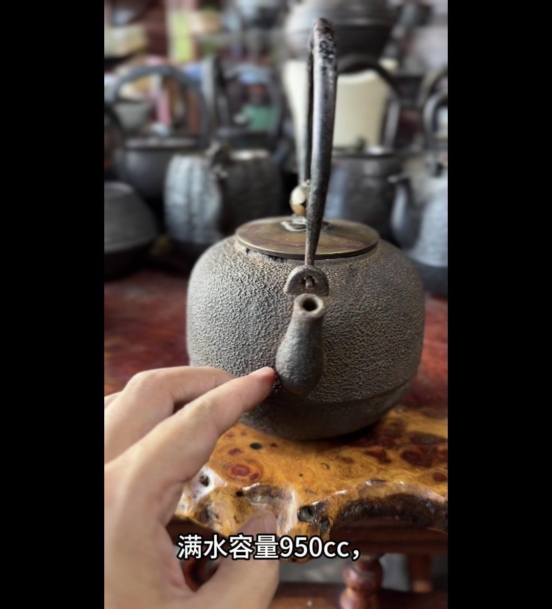 🏺江户时期老铁壶真的太戳我了!九代寒雉尚义亲手打造,壶身是优雅的宝珠形,950cc容量刚好适合日常使用和收藏。 粗砂颗粒触感太绝了,鲨鱼皮工艺让表面带着粗犷的质感,每次摸都能感受到百年前匠人的温度。壶身上还有象山公远山写的字样,不仅是身份的象征,更藏着历史故事和文人雅致,煮茶时就像在和过去对话。 茶香混着时光慢慢流淌,这样的老物件真的让人爱不释手。