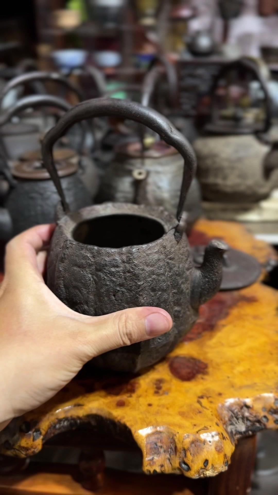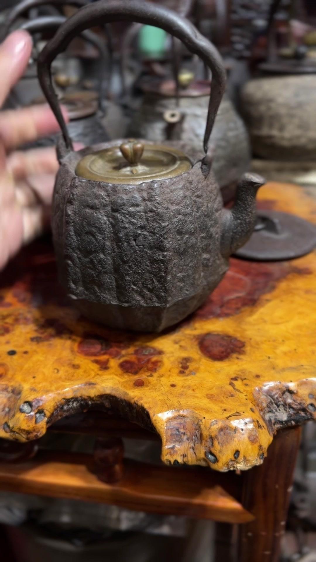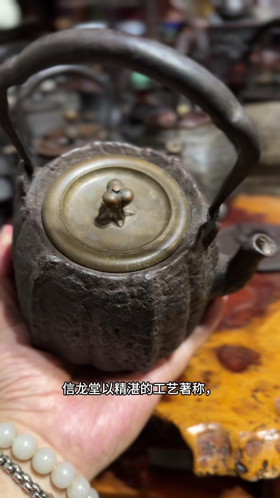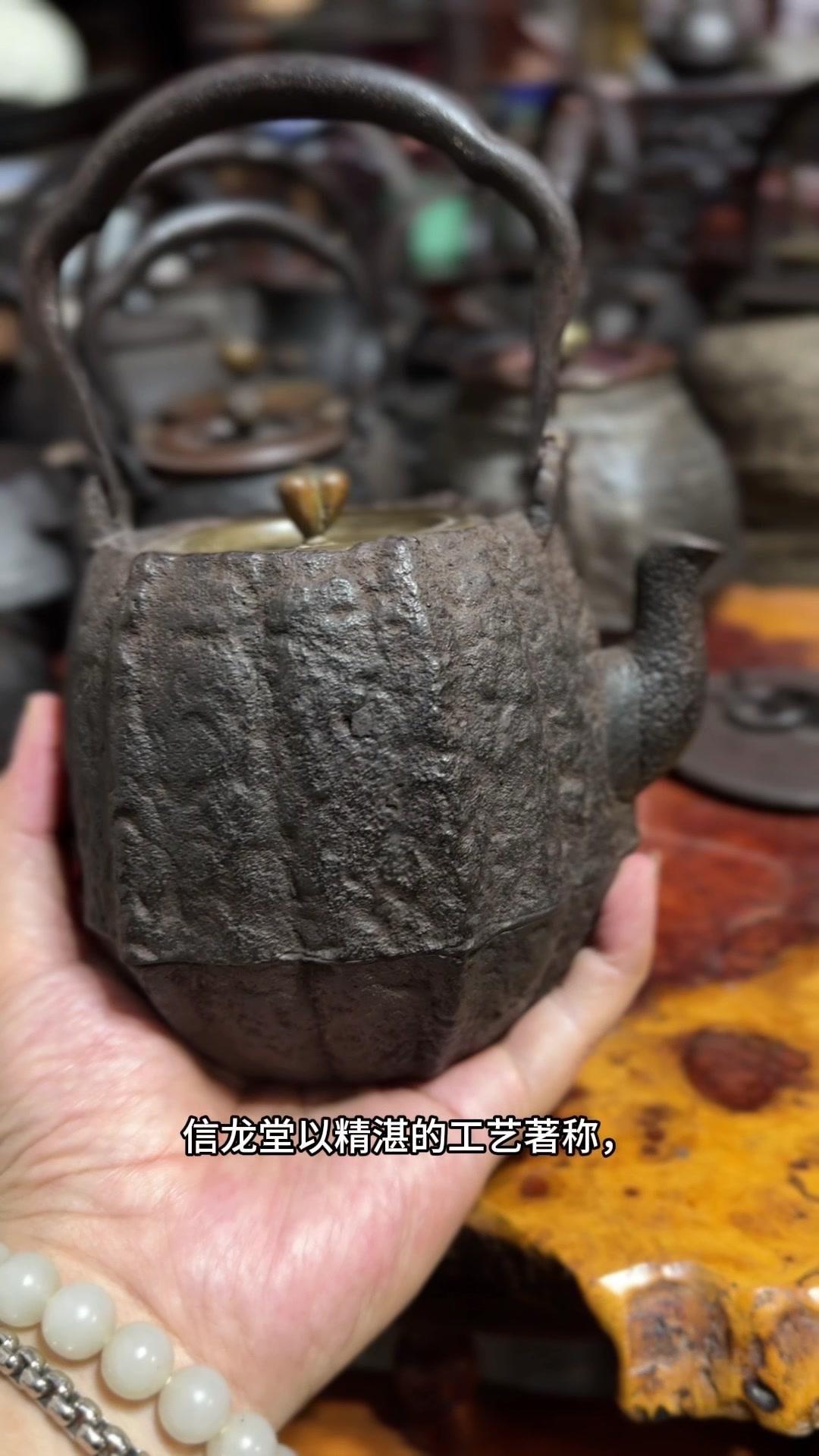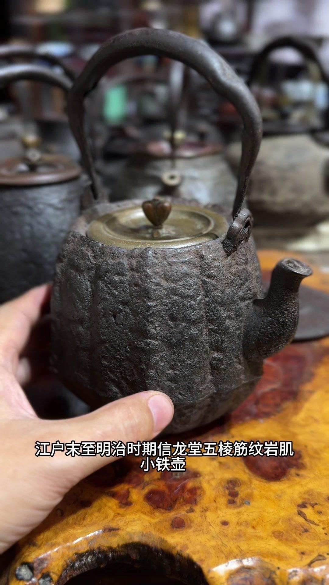 这件出自日本著名堂口的小铁壶,盖款清晰,容量约800CC,体型小巧精致,日常使用很方便。壶身五棱金纹设计,线条流畅、棱角分明,独特的几何美感让人一眼心动。 表面自然的岩基纹理,粗糙中透着温润,是岁月沉淀的质感。信隆堂以精湛工艺著称,尤其在明治时期达到巅峰,这件作品还记录于《三代安之介图录》,收藏价值和历史意义都超高。 安之介作为堂内重要工艺师,作品造型典雅、工艺精细,难怪深受铁壶爱好者青睐。每一处细节都藏着匠心,让人忍不住想好好收藏。