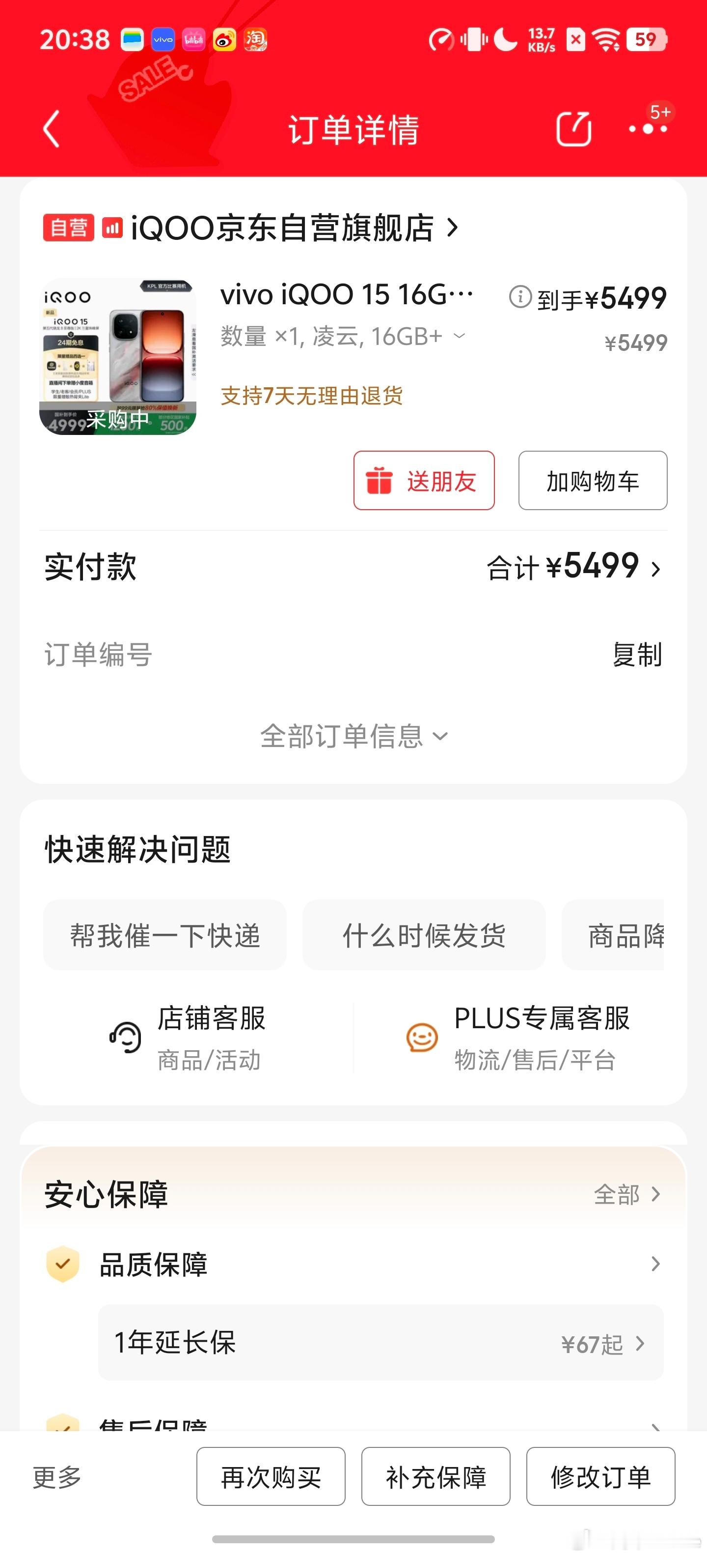 我还抢到了限量200台的王者荣耀十周年典藏版的iQOO 15,在想是不是小赚一点回回血比较合适[捂嘴哭]