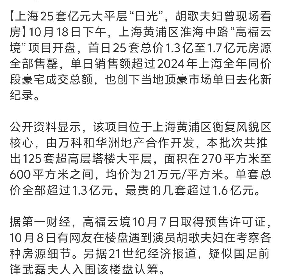 日光盘来了!上海高端平层 据界面新闻:上海25套亿元大平层“日光”!你们是不是