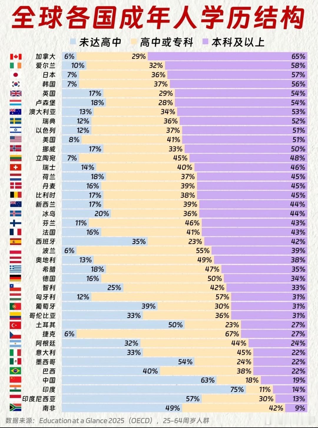 总说印度人没文化,但看这个学历表,中国和印度竟然是比邻的。