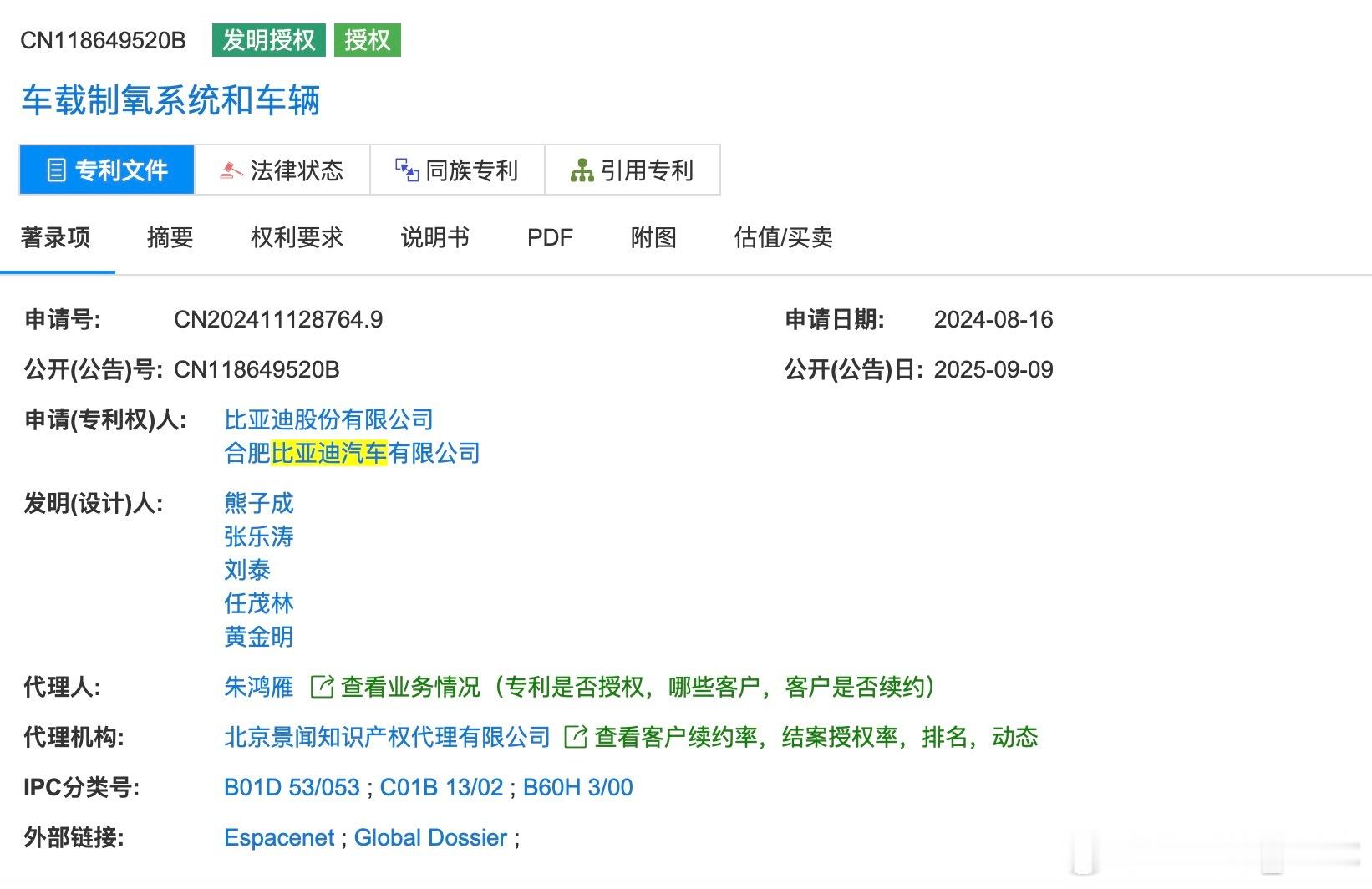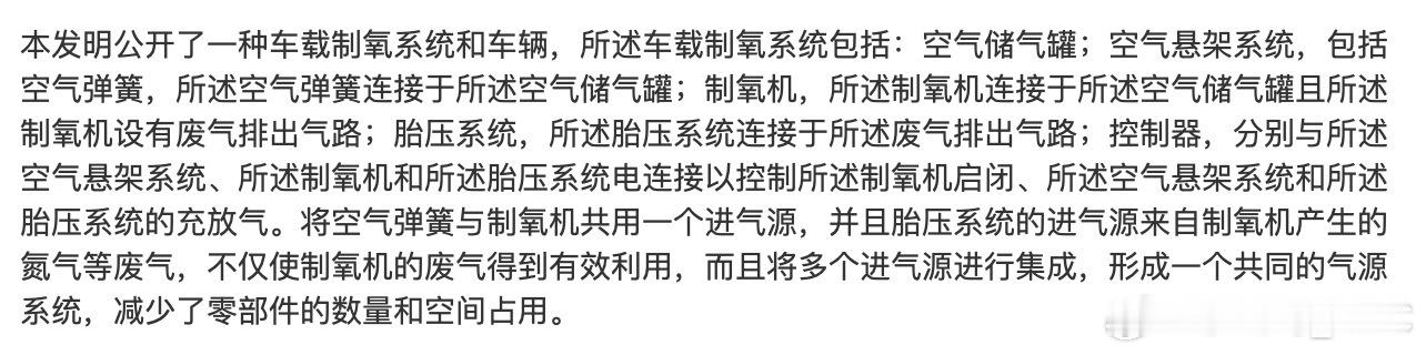 看了个比亚迪的专利,车载制氧机,可不是简单的一个制氧机放车上通个电而已。