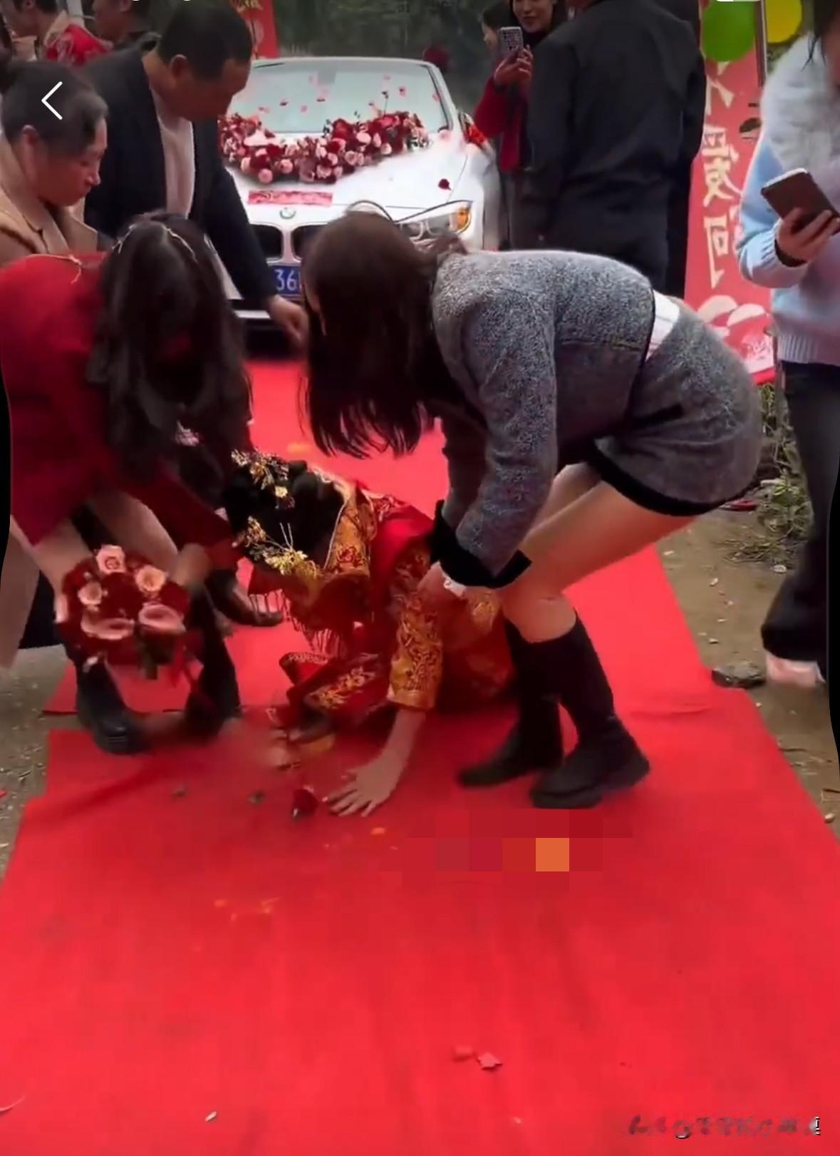 新娘刚下车,就被新郎的朋友泼了一身的鸡蛋液,新娘躲闪不及,狼狈的摔倒在地,鞋子都掉了。 伴娘也没有幸免,也是被泼的满身都是,甚至头发上都是。 随后新郎抱着新娘进门,新郎的朋友仍在后面扔鸡蛋,新郎的西装上都是鸡蛋液。 婚闹太过了,如果是我会当场就翻脸了,一辈子就结婚当天最美,让人弄的如此狼狈,我看着都尴尬!结婚闹事情