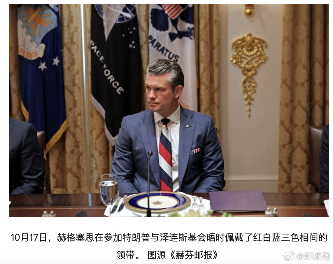 美国国旗也同样包含红白蓝三色。此前,针对赫格塞思领带引发的争议,美国副总统万斯曾在社交平台X上回应称:“或许他戴的是美国(国旗)的颜色。”