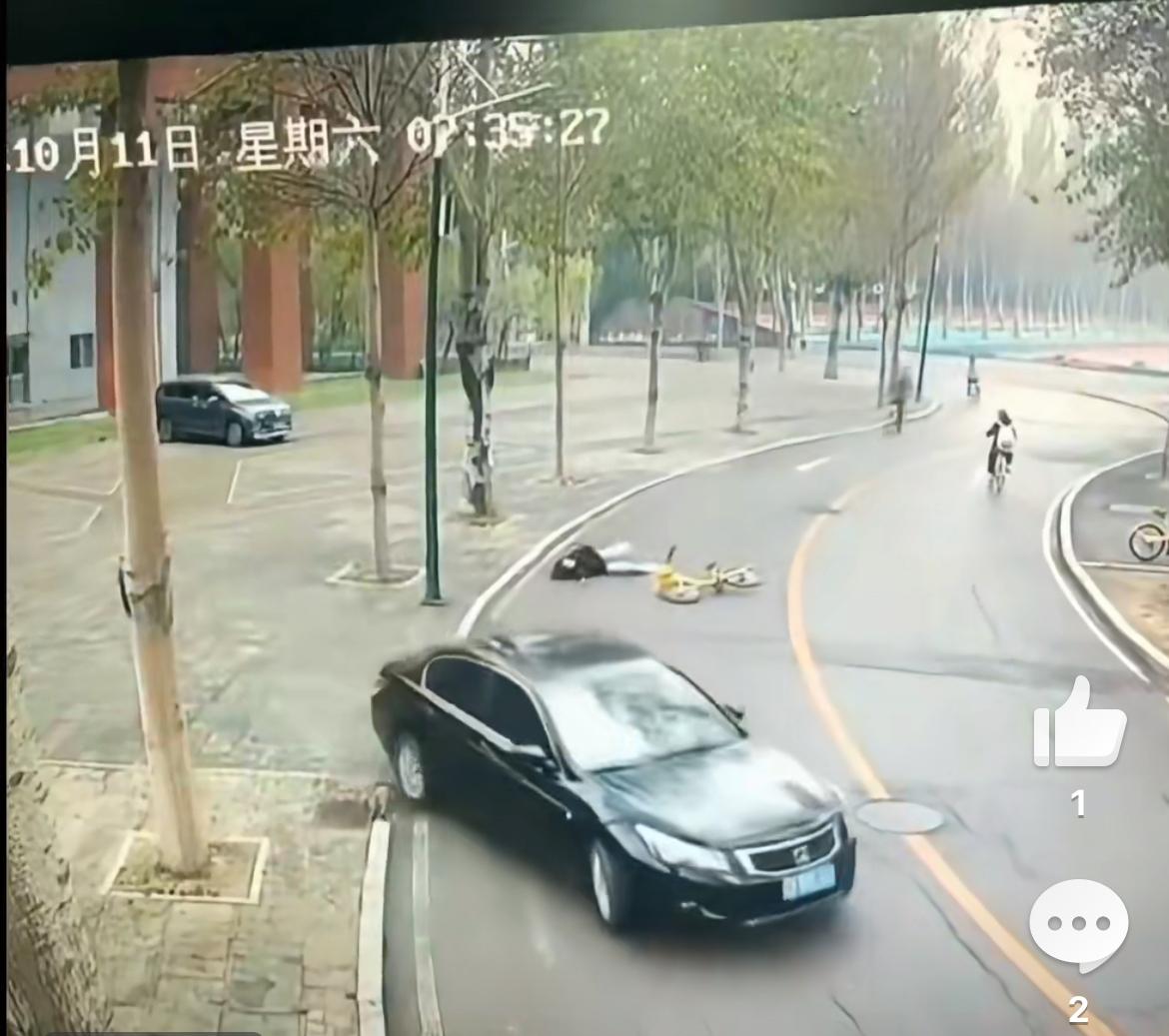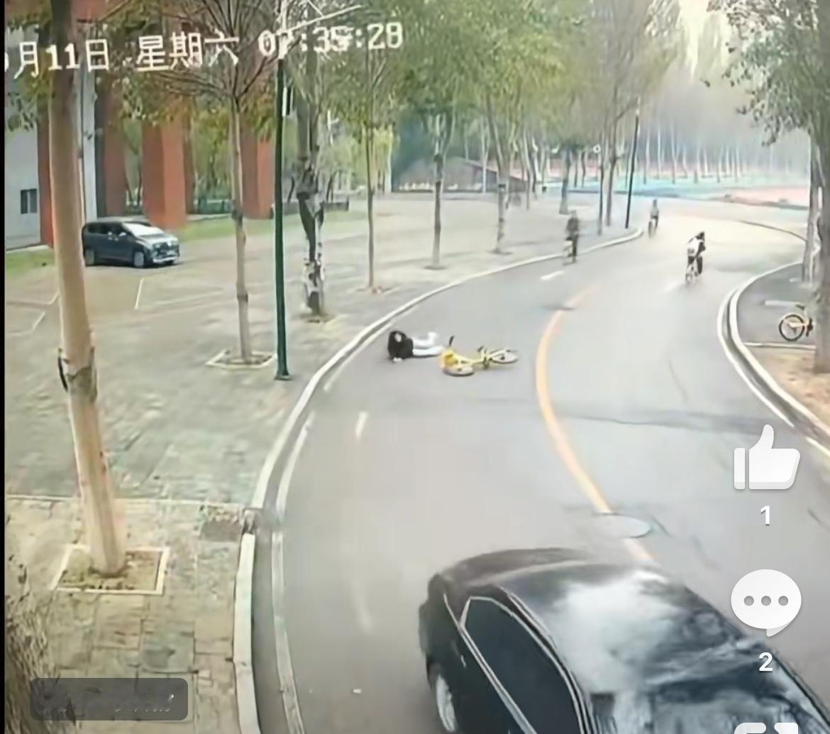 车辆和自行车完全没有接触,你们看看自行车摔倒车辆要负责吗?一个女生骑着共享自行车在双车道的马路上走,一辆黑车从马路边的停车场出来,离进入马路还有一米远的距离,骑过来的自行车却突然摔倒了,女生受伤,黑车该负什么责任?车被别人撞了 交通事故责任