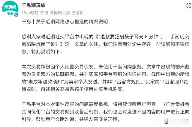 最近,一个潮玩平台火了。事情起因,是一名11岁的女孩,在该平台购入500元卡片,妈妈联系平台,申请退货。但是这个潮玩店家给出的答复是:“想要退款可以,必须狂扇孩子耳光5分钟,必须听到清脆的声音,然后还要拍视频!”就在家长无语的时候,平台继续说:“怎么了,想退吗?想退就去做啊!”看到客服这么嚣张的处事态度,可把这位妈妈气得不轻。 环球网10月21日报道了这则新闻。最终,妈妈也没有上传怒骂孩子、打骂孩子的视频,这要是真照做,孩子的心理必定造成重大创伤,而且肯定也会造成不良影响。 购买了物品不给退,想要退就要暴力对待未成年人,还要拍视频上传网络?这家潮牌店家可真的是奇葩到极致。 李云的女儿今年11岁,小女孩非常喜欢收集卡片,于是就偷偷的拿了外婆的手机,登录到千岛上面去,准备下单购买卡牌。 前后一共购买了500多元卡牌,小姑娘就静静的等待卡牌快些来到自己身边。而细心的外婆发现,自己银行卡被消费掉500多元,感觉不大对劲。 调查了消费记录之后发现,消费账单来自于牵倒这个平台。外婆也不是很懂,于是就把手机的相关记录,都交给女儿李云看。 李云查看了之后,发现是购买的卡牌,才产生了这么多的消费金额。看到卡牌,也就联想到自己的女儿,可能是女儿偷偷做的事情。 果然,经过一阵细问,发现确实是自己11岁的女儿购买。500多元买一堆没用的卡牌,李云一气之下,就准备发起退款。 李云就把事情的详情告知给了店家,但是店家的态度令人震惊:“想要退款可以,请你暴揍你的小孩一顿再说。” 然后还给出了具体的细则,要扇耳光,时间要长达5分钟,要能听到清脆的“啪啪”声,而且家长还要拍视频,将殴打孩子的视频再上传网络。 听到这些无理的要求,试问哪位家长忍心呢,而且感到非常莫名其妙。消费了产品,可以无理由退款,要求退你就退,怎么还如此无理呢。 李云就问道:“你们确定这样做,对未成年来说合理合法吗?”谁知道店家直接说:“怎么了,想要退款吗,要退就去照做!” 一直到最后,店家也没有给李云办理退款。李云将店家投诉给了平台,谁知道平台却说:“对不起啊,我们没办法强制的,你们自己去沟通吧。”意思就是,该打还是要打,我们又不好干预。 李云只能将这个平台以及店家给曝光,记者也帮忙联系了这个平台公司的座机电话,但是一直没有人接听。 1.11岁的女孩在平台购入卡牌,后期监护人提起退款,平台以及店家拒绝退款,此举是否涉嫌违法呢? 根据《民法典》第19条规定,11岁女孩属于限制民事行为能力人,其单次消费500元的行为已经明显超出其能力、智力相适应的范围,这类大额消费需经过法定代理人同意或追认,否则教育行为无效,可以申请退款。 李云作为孩子的监护人,具备追认权,当明确表示拒绝追认时,这起网购行为自始无效,潮牌店家需要返还货款。 作为平台,需要对这类风险交易履行审核义务,并且需要积极协助处理未成年人退款的纠纷。如果消极对待甚至不作为,监护人可以向相关部门投诉。 2.平台有这样的规定,想要退款,就要暴揍孩子5分钟,还要求拍视频,否则就不给退款。这一行为是否合法呢? 根据《未成年人保护法》规定,法律明确规定禁止任何形式的家庭暴力,要求保护未成年人的人格尊严和身心健康。平台或者卖家诱导家长实施暴力行为,已经构成对于未成年人权益的侵害。 唆使他人去实施暴力,甚至是针对未成年人,暴力对待小孩,要求家长拍摄扇耳光视频,此举不仅违反了《反暴力法》,甚至可能被认定为教唆侵权,店家需要承担连带责任。 家长需要及时保持交易记录,对方拒绝退款的沟通截图,及时向消协、或者其他部门提起举报,后期可以依法追回全部退款。 一方面是店家需要规范自己的店规,不要踩踏法律红线、任意妄为;一方面家长要监护好未成年人,不要擅自下单,要经过爸爸妈妈同意才行哦。 针对此案,大家看后都作何感想呢。