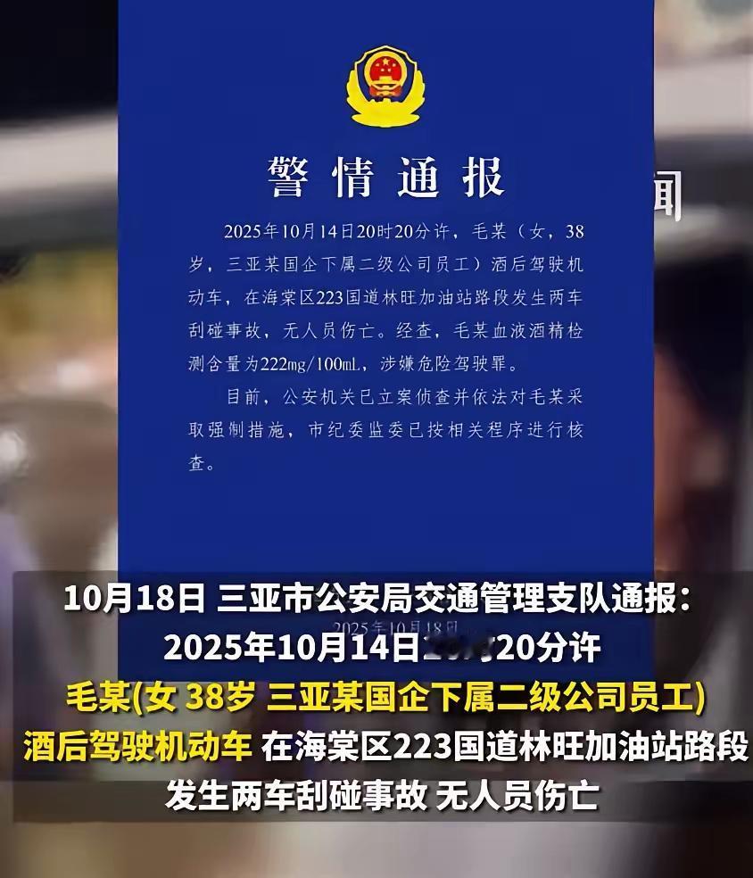 这哪是撞了车?分明是撞碎了自己的人生!三亚这女司机的操作,简直把“作死”俩字写在了脸上。 酒后倒车蹭了劳斯莱斯,车主看她状态不对,主动递台阶,说2万私了就算了。换别人早赶紧点头感谢,她倒好,不仅不领情,还对着执法记录仪比剪刀手,喊着“我是国企的,让市委市政府通报我”。 她怕是忘了,国企身份不是护身符,222mg/100mL的酒精含量才是铁证。劳斯莱斯补个漆可能都不止2万,车主的让步是情分,可法律不讲情面。 最后工作没了,还因危险驾驶罪被立案,留了案底,这哪是任性?是无知到可笑。真以为“身份”能凌驾于规则之上?殊不知规则面前,人人平等,越嚣张摔得越惨。