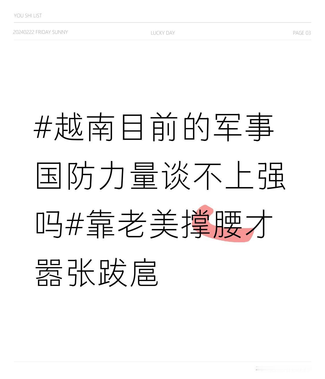 说越南靠老美撑腰才嚣张跋扈有点片面了。越南在东南亚军事实力其实不算弱。它曾和三个大国过招,最后这些大国都从其领土撤离。而且越军受过中国全面军事培训,有一定军事思想基础,像个弱化版解放军。 从越南的大学军训就能看出其军事氛围,打靶、野外生存、单兵武器操作都要考核,有点全民皆兵的意思。不过,说它靠美国撑腰嚣张就不准确,之前美国在涉港问题拉拢越南,越南明确表态尊重中国“一国两制”,拒绝了美国。所以越南军事有自身特点,并非单纯依赖美国。