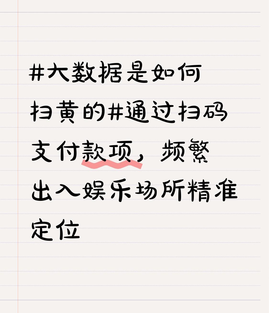 大数据扫黄确实厉害!在互联网时代,我们的一举一动都能被记录。就说通过扫码支付款项