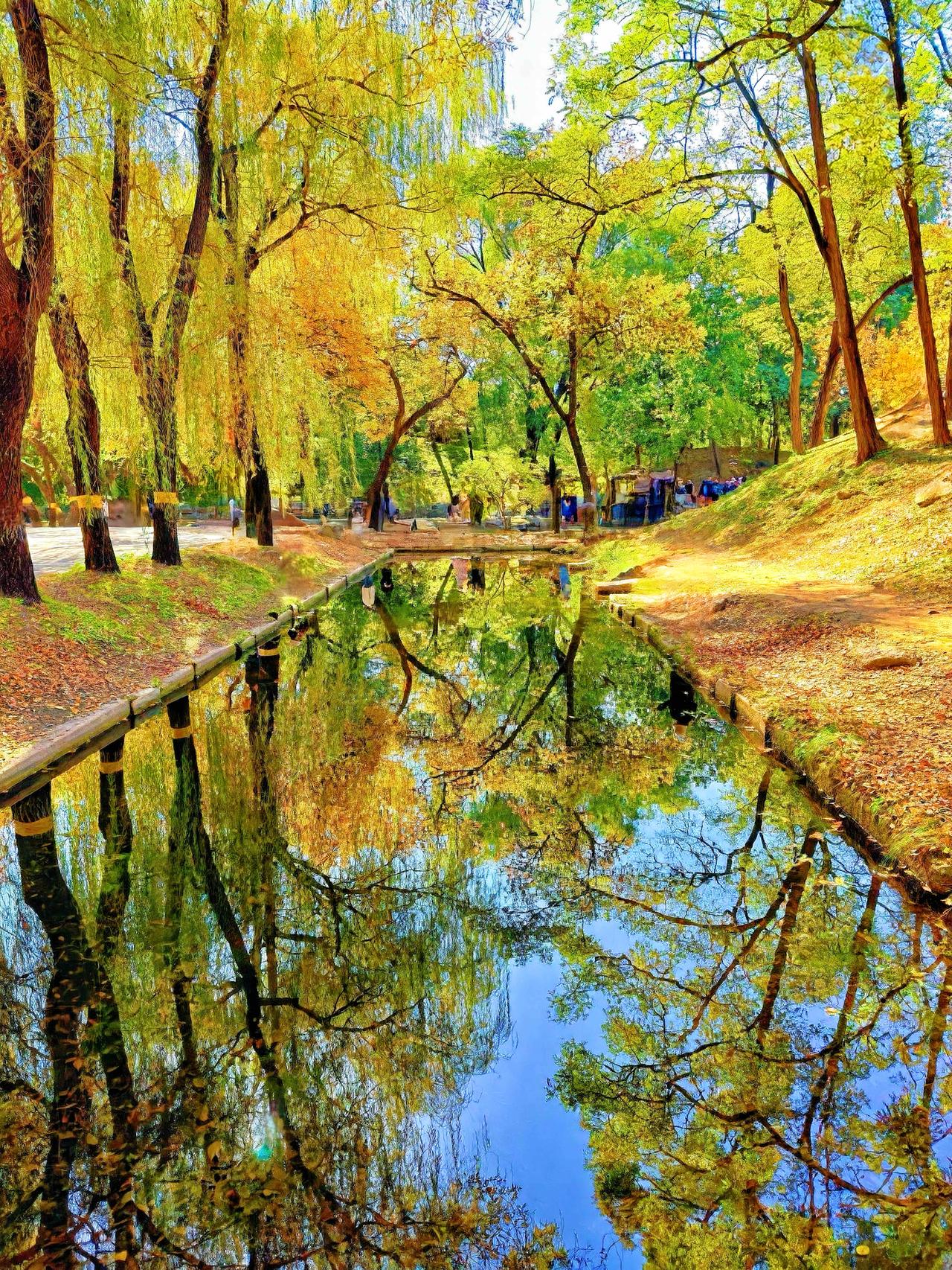 传说中的地坛银杏大道,我是用AI把所有的人都P掉了,真实场景是大道上全是人,看不