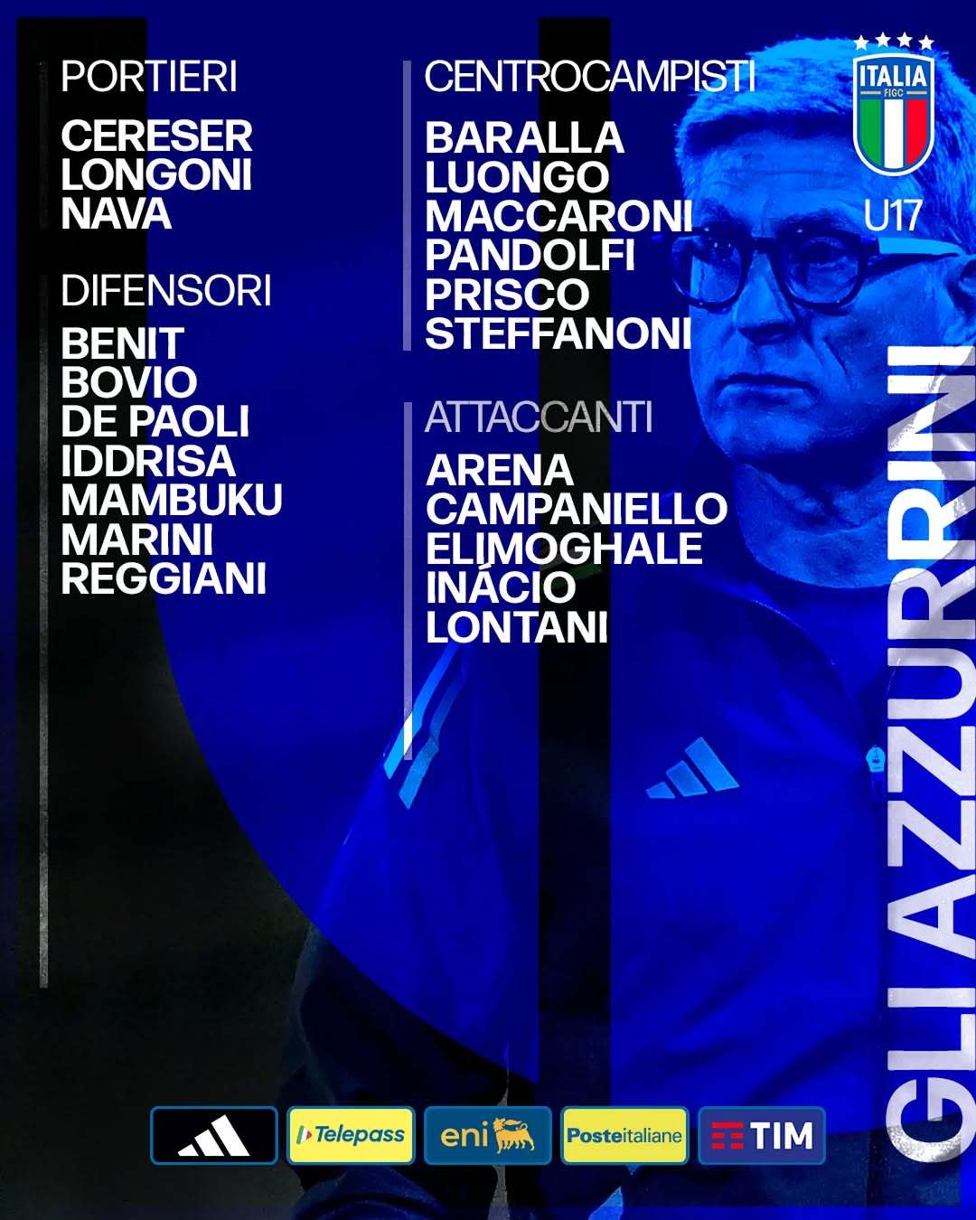 【官方】 💙 意大利U17国家队公布卡塔尔U17世青赛 最终球员大名单: