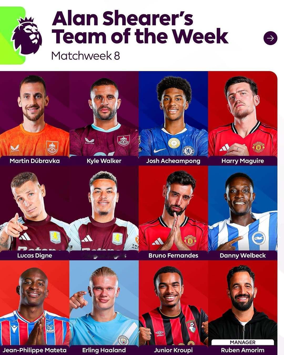 【官方】 英超 2025-26赛季英格兰🏴足球超级联赛第八轮最佳阵容。[春游家族]