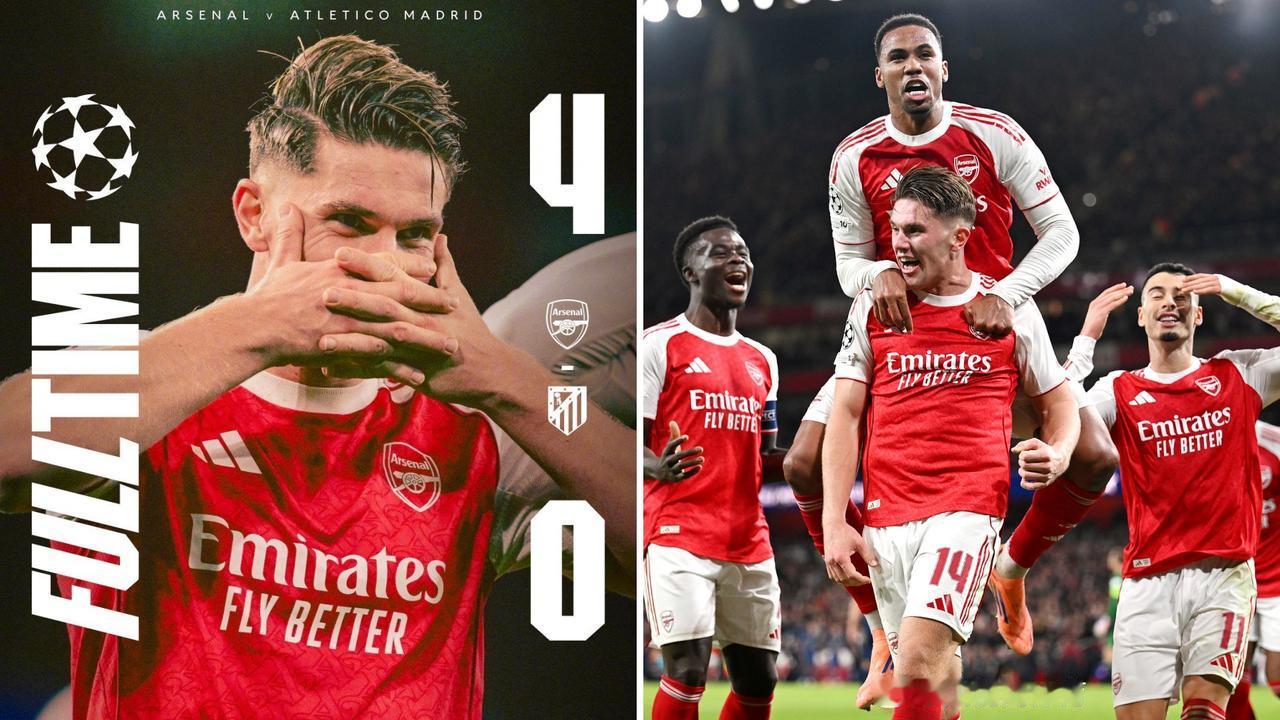 欧冠:阿森纳主场4-0大胜马竞,13分钟打花对手取得欧冠3连胜。 加布里埃尔率先建功,马丁内利拉杆破门,约克雷斯完成双响。