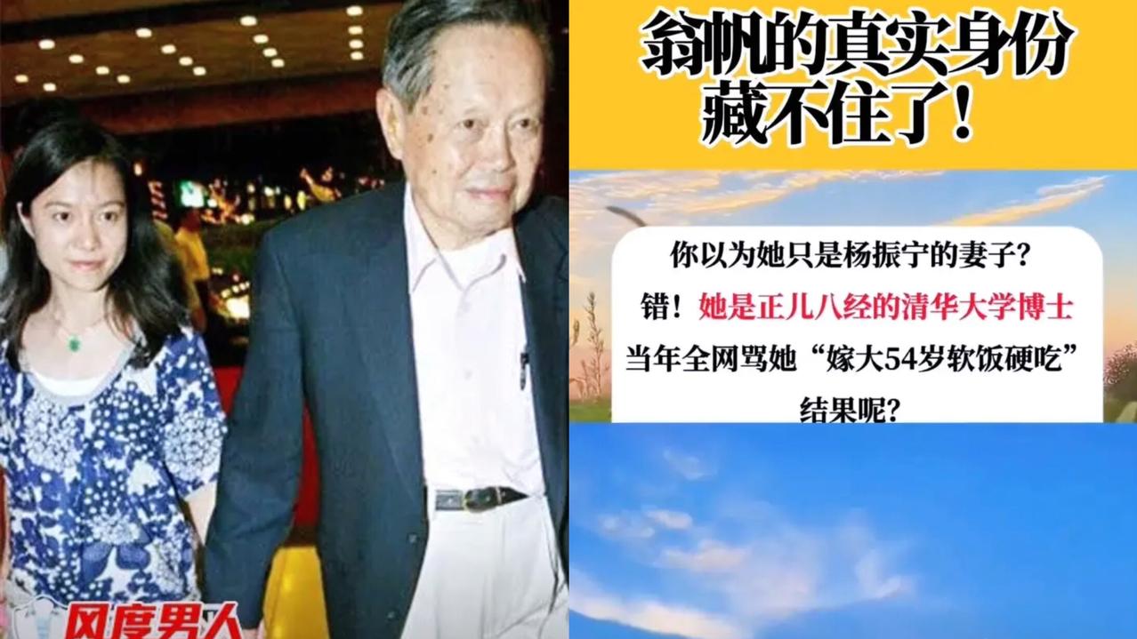 翁帆哪只是“杨振宁的妻子”? 那些骂她“软饭硬吃”的人, 早被 现实狠狠打脸了! 20年前28岁的她嫁82岁的杨振宁,全网都在猜她图钱图名。 可谁看见她19岁就凭流利英语接待杨振宁,后来靠真本事考上清华博士。 同学说她笔记记得比谁都认真,穿得比普通学生还朴素。 更别说和杨振宁捐近200万美元给清华,一起写《晨曦集》,她早活成了学术圈的“实力派”。 20年里熬通宵照顾生病的他,杨先生说她是“上帝的礼物”。 还公开支持她未来再婚,这哪是攀附,分明是平等的爱与陪伴。 总有人用偏见衡量别人的人生,却忘了感情从不是年龄能定义的。 她用20年证明,女性的价值从不是依附谁,而是活成自己的光。 你觉得翁帆的人生选择,最戳你的是哪一点?评论区聊聊~杨振宁
