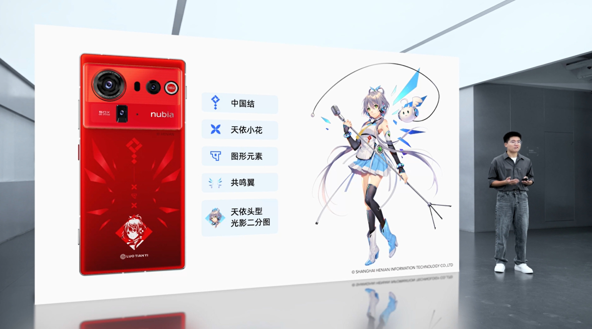 星空典藏版以「星月夜」为灵感,微米级的星轨环绕立体光刻,让星光从背面流淌至掌心。洛天依限定版炽烈而灵动的红,造型独特的共鸣翼,搭配中国结、天依小花和图形元素等元素点缀。