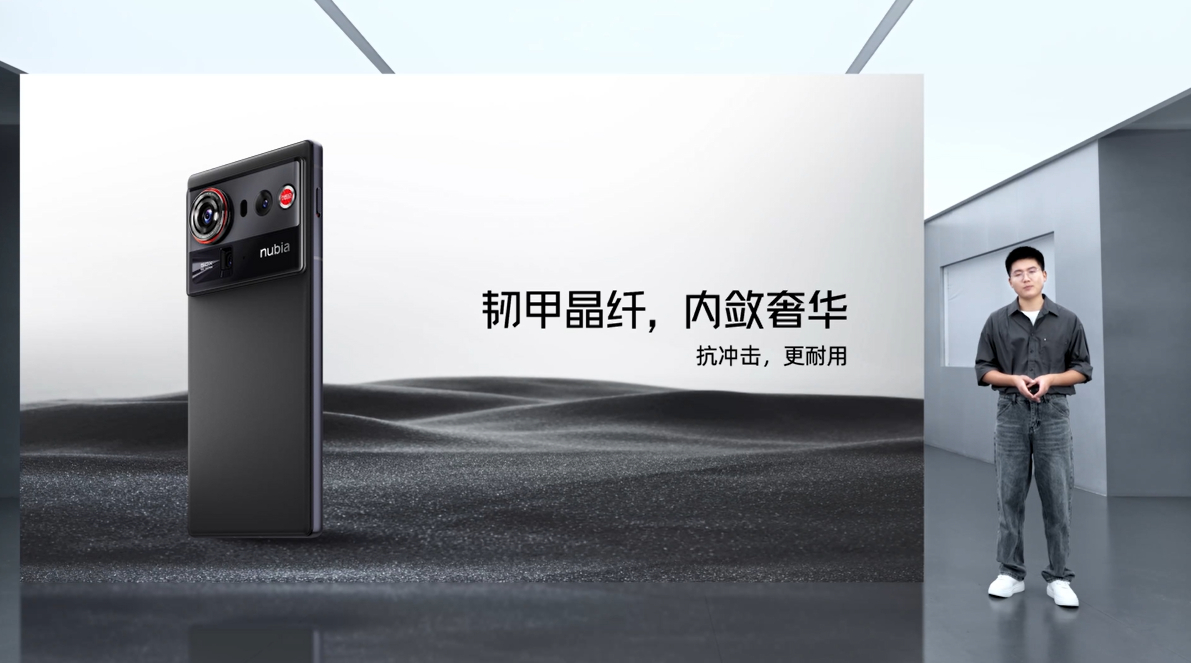 努比亚Z80Ultra这次提供魅影黑、凝光白两款经典配色,采用韧甲晶纤材质,带来