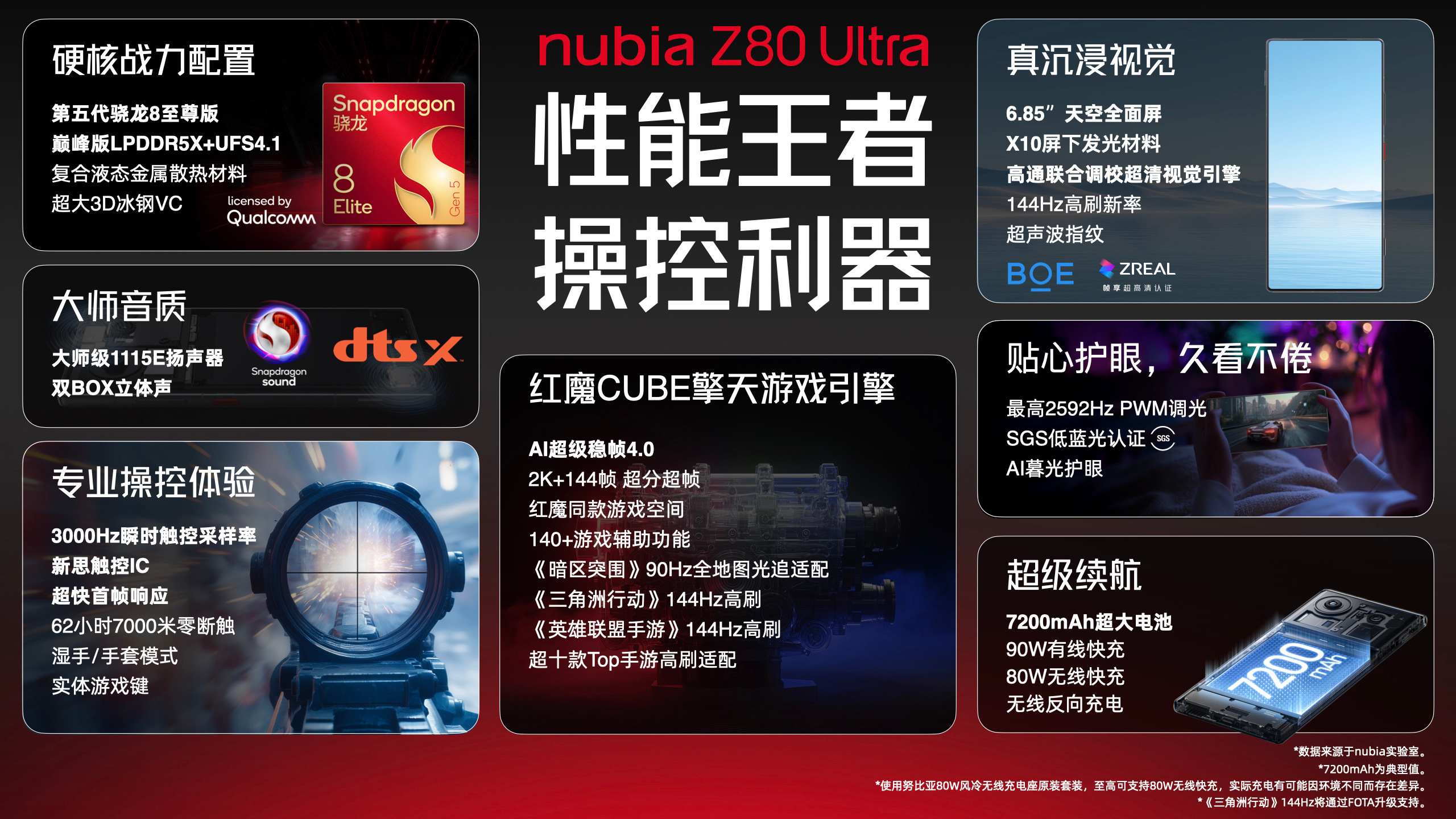 更值得一提的,是它把兄弟品牌红魔游戏手机的核心技术——CUBE擎天游戏引擎给拿了过来。这意味着它的游戏调度会更激进、更聪明,目标是实现高帧率且全程稳定。配合安卓目前最强的骁龙8 Gen 4至尊版芯片、一块144Hz高刷的“天空全面屏”,以及高达7200mAh的超大电池,这套配置堆起来,游戏性能直接向专业电竞手机看齐,续航焦虑也大大缓解。