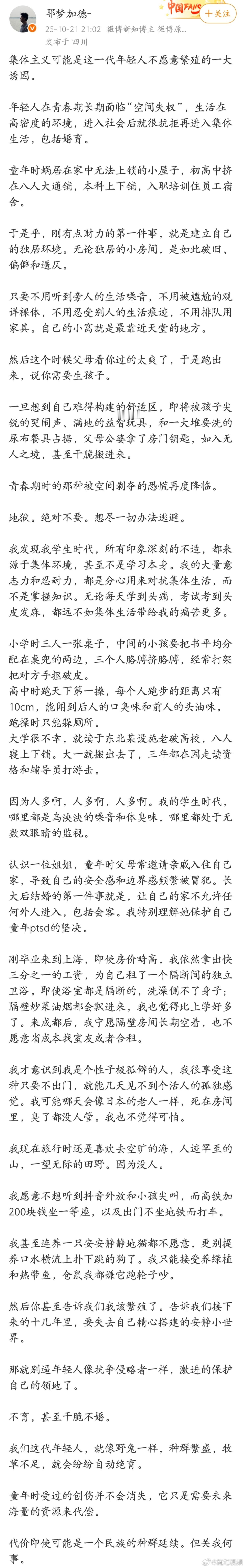 集体主义可能是这一代年轻人不愿意繁殖的一大诱因。