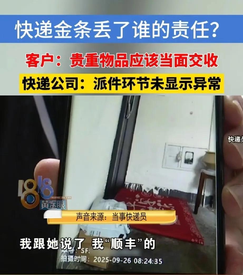 杭州女子让快递放门口,5克金条丢了!要求赔偿,快递公司回应绝了 杭州肖女士让快递小哥把包裹放家门口,半小时后才发现其中有5克金条(价值数千元),回家后金条已丢失。她认为快递小哥应当面交付贵重物品,要求赔偿;小哥觉得按要求投递无过错。警方调查未发现小哥异常,快递公司回应“按客户要求操作,不承担理赔责任”。本文从法律角度拆解责任归属,教大家遇到贵重快递该怎么处理。 一、金条丢了!半小时的疏忽,数千元没了 肖女士平时爱网购,这天早上8点多,顺丰小哥打电话说要送快递,问她在不在家。 当时肖女士没在家,想都没想就说:“你把包裹放门口就行。”小哥还特意问她要了密钥,她也直接给了,挂了电话就没再管这事。 可过了半小时,肖女士闲下来刷购物平台,突然发现不对劲——刚才让放门口的两个快递里,竟然有一个是5克的金条!这可不是小数目,换算下来得好几千块钱。 她瞬间慌了神,贵重物品放门口多不安全啊!肖女士赶紧往家赶,可到家一看,门口只剩装狗粮的快递,装金条的包裹没影了。 数千元说没就没,肖女士急得不行,立马报了警。警方调取小区监控,画面里只看到:8点21分小哥把包裹放单元楼口,然后抱着其他快递上楼;8点26分小哥空手离开(手里的箱子比金条包裹大很多)。一个小时内除了小哥,就只有个外卖员路过,没拍到其他可疑人员。 更巧的是,当天晚上7点多,同一个小哥又来送肖女士的快递——这次是10克金条!吸取教训的肖女士丈夫提前联系,当面拆箱验货还拍了视频,才算没再出岔子。 可丢了的5克金条怎么办?肖女士越想越气:“贵重物品就该当面交,哪怕我说放门口,小哥也该提醒我里面是金条啊!附近有快递柜,他也不建议我放那儿,现在丢了就得赔!” 但快递小哥满肚子委屈:“我是按她要求放的,还问了密钥,她自己知道里面是什么,怎么能怪我?” 二、法律不糊涂:谁的错?看这两个关键点 这事吵来吵去,核心就是“金条丢了,该谁担责”。不少人觉得“快递就该保证东西不丢”,但法律上的责任划分,要看“双方有没有过错”,这两个关键点一定要搞懂。 1. 快递小哥按要求投递,算“完成义务”吗? 根据《快递暂行条例》第25条,快递公司要按约定地址、收件人要求投递,并告知当面验收。 肖女士明确说“放门口”,还提供了密钥,等于主动放弃“当面验收”的权利。小哥按这个要求放了包裹,从法律上看,已经完成了运输合同里的“投递义务”。除非能证明小哥没放对地方、或者中途私自拆开包裹,否则他没有过错。 简单说:是肖女士自己让放门口的,不是小哥强行放在那儿的,这一步小哥没做错。 2. 肖女士的“疏忽”,才是丢东西的关键 《民法典》第832条有规定:承运人(快递公司)对货物毁损、灭失要担责,但如果是收件人自己的过错造成的,承运人不用赔。 肖女士的问题出在两点:一是没核实包裹内容就同意放门口——她自己都忘了里面有金条,怎么能怪小哥没提醒?二是没评估风险——门口不是安全投递点,尤其对贵重物品来说,她没尽到“合理注意义务”,等于自己把风险放大了。 举个例子:你让外卖员把刚买的手机放门口,结果丢了,总不能怪外卖员没提醒你“手机贵重”吧?道理是一样的,自己的东西自己要上心。 3. 快递公司为啥“不理赔”?合法吗? 快递公司说“不承担理赔责任”,其实是有法律依据的。因为他们的投递流程没违规,既没弄丢包裹,也没损坏货物,丢失是因为肖女士选择的投递地点不安全、自身没核实内容导致的。 但这里要提醒快递公司:如果是明确标注“贵重物品”的快递(比如寄件人备注了“黄金”),小哥最好多问一句“确定放门口吗?贵重物品建议当面收”,虽然法律没强制要求,但能减少纠纷,也更显负责。 三、网友吵翻了:到底是快递不负责任,还是女士自己马虎? 这事一传开,网友们分成了两派,有人替肖女士可惜,有人觉得是她自己的问题,评论区争论得特别激烈。 “我觉得快递小哥该提醒!毕竟是金条,要是普通东西丢了就算了,这么贵的东西,多问一句能少很多事啊!” “站快递公司!肖女士自己忘了里面有金条,还让放门口,这是自己的过错。要是这样都让快递赔,以后谁还敢按客户要求放包裹?” “提醒大家!贵重快递一定要选‘当面签收’,哪怕让家人代收也行,放门口、放快递柜都有风险,别嫌麻烦!” “我们送快递时,遇到没写贵重但包装精致的,会提醒客户‘最好当面收’,但如果客户坚持放门口,我们也只能照做,总不能跟客户吵架吧?” 最后想问大家:你觉得肖女士的金条丢了,快递公司该赔吗?如果是你,遇到贵重快递会怎么处理?欢迎在评论区聊聊,给更多人避避坑!