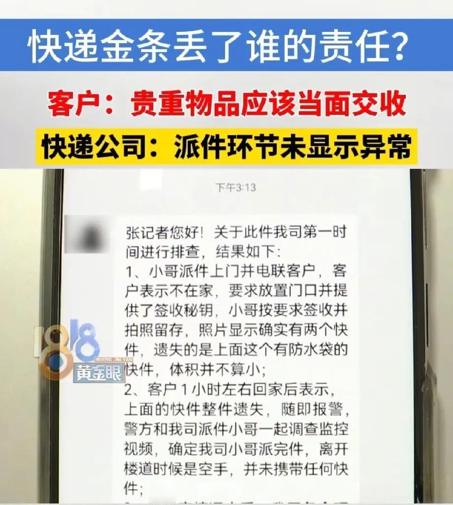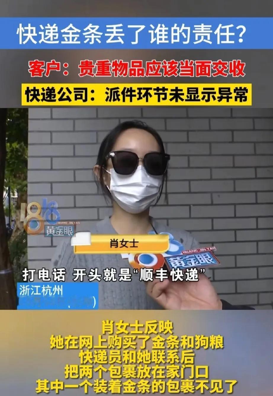 杭州女子让快递放门口,5克金条丢了!要求赔偿,快递公司回应绝了 杭州肖女士让快递