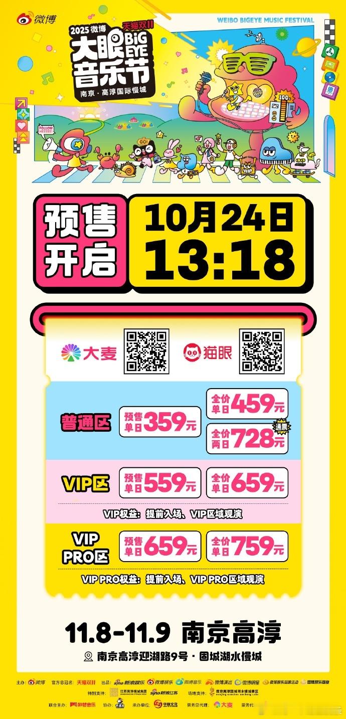 大眼音乐节把内娱流量集齐了 11月8日-9日,南京高淳将迎来一场超燃的音乐狂欢——大眼音乐节!华晨宇、王嘉尔、刘雨昕、黄子弘凡、周震南、石凯、喻言、张峻豪、颜安等一众顶流艺人集结待发,音浪即将席卷全场!11月24日13:18预售准时开启,你的音乐盛宴,等你来加入!