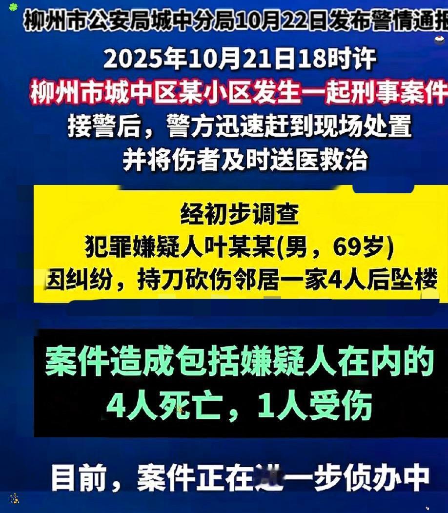 一家子的天塌了, 一家四口被砍,三口人被杀害,一人受伤, 这一家子真的没法活了,家破人亡了。 谁能想到,邻里间的一点摩擦,最后竟酿成三条鲜活生命消逝的惨剧? 69岁的邻居,本该是安稳度日的年纪,却举起刀将矛盾推向了绝境,这哪是邻里纠纷,分明是把冲动变成了毁人毁己的凶器。 更让人堵心的是,嫌疑人坠楼身亡,没给受害者家属一个直面讨说法的机会。 三条人命的公道成了悬案,活着的人带着伤痛无处倾诉,逝去的人怕是也难安息,这比任何惩罚都更让人难受。 其实邻里相处哪有解不开的结?退一步、让一句,多些包容少点计较,何至于走到家破人亡的地步? 冲动从来不是解决问题的办法,而是把所有人拖进深渊的魔鬼。 你们觉得,邻里间遇到矛盾时,该怎么避免冲突升级?如果是你,会用什么方式化解邻里摩擦?