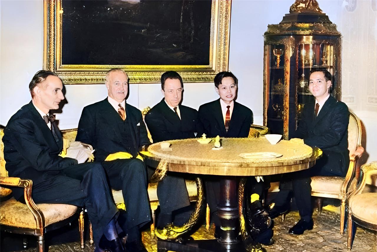 这是1957年杨振宁、李政道与同年诺贝尔奖获得者在一起。这一年,诺贝尔奖获得者总共有六人。除了杨振宁与李政道外,还有诺贝尔化学奖获得者亚历山大·罗伯兹·托德、诺贝尔和平奖获得者莱斯特·皮尔逊、诺贝尔生理学或医学奖获得者达尼埃尔·博韦,还有诺贝尔文学奖获得者阿尔贝·加缪。 这一年,杨振宁35岁,李政道31岁,加缪44岁,亚历山大·罗伯兹·托德50岁,莱斯特·皮尔逊60岁,达尼埃尔·博韦50岁。相比其他几位诺贝尔奖获得者,杨振宁与李政道可谓年轻有为。 更为了不起的是,他们所获得诺贝尔物理学奖要比其他几位的诺贝尔奖更难。30多岁能获得诺贝尔奖在诺贝尔奖史上绝对是凤毛麟角。