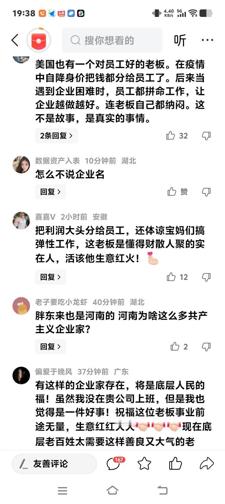 河南冻品老板王宾豪掷85%利润分给员工!宝妈月薪5万弹性工作制震撼全网,背后真相让人泪目 (来源:深圳新闻网) 当大多数企业还在为“996”争议不休时,河南郑州一家冻品企业悄悄上演了一场现实版“财散人聚”的传奇。老板王宾坦言:“公司挣100万,85万直接分给员工!”这一决定让宝妈员工月薪高达5万,弹性工作制更是彻底颠覆传统职场规则。 走进这家企业,最令人震撼的不是冰冷的冻品仓库,而是员工脸上洋溢的踏实笑容。一位宝妈展示工资条时手微微颤抖:“上个月拿了29000元,第三个月加上奖金直接突破5万!”这样的收入在二三线城市堪称“天花板级”,但王宾却轻描淡写:“员工创造价值,就该共享成果。” 更打动人的是企业对宝妈群体的极致呵护。300多名员工中,260多人是宝妈,她们可以特批时间接送孩子,每月额外6天自由假,相当于只需工作20天。有网友感叹:“这哪是上班?简直是职场乌托邦!” 王宾的初衷朴素得令人动容:“我家也有两个孩子,深知宝妈的不易。”他拒绝让员工过“手心向上”的生活,而宝妈们的回报更让他惊喜——用心程度远超预期,公司效率不降反升。这种双向奔赴的信任,成了企业最坚固的护城河。 反观当下职场,内卷与压榨屡见不鲜,王宾的做法像一记响亮的耳光。有员工直言:“在这里,尊严比赚钱更重要!”当老板把员工当家人,员工便甘愿与企业共进退。这种朴素的管理哲学,恰恰戳中了无数打工人的软肋。 网友们的评论更是掀起情感海啸:“河南胖东来、崔培军,再加上王宾,这片土地专产‘神仙老板’!”“弹性工作+高薪分利,这才是共同富裕该有的样子!”更有人犀利指出:“员工不是成本,而是财富的共创者——可惜太多资本家不懂。” 王宾的故事之所以引爆共鸣,是因为他撕开了资本与劳方对立的旧剧本。当善意成为商业模式,当信任取代考核表格,人们突然发现:劳动尊严从未消失,只是被太多人遗忘。有宝妈哽咽:“在这里,我重新找到了被尊重的感觉。” 或许,真正的管理智慧从来不在MBA教材里,而在如何对待每一个具体的人。王宾的冻品公司规模不大,却为整个时代上了一课:利润可以计算,但人心的价值永远无价。 河南老板王宾 85%利润分员工宝妈 月薪5万弹性工作制震撼全网 背后真相让人泪目 职场正能量 共同福裕 企业家格局 (来源:河南广播电视台民生频道、深圳新闻网综合报道)