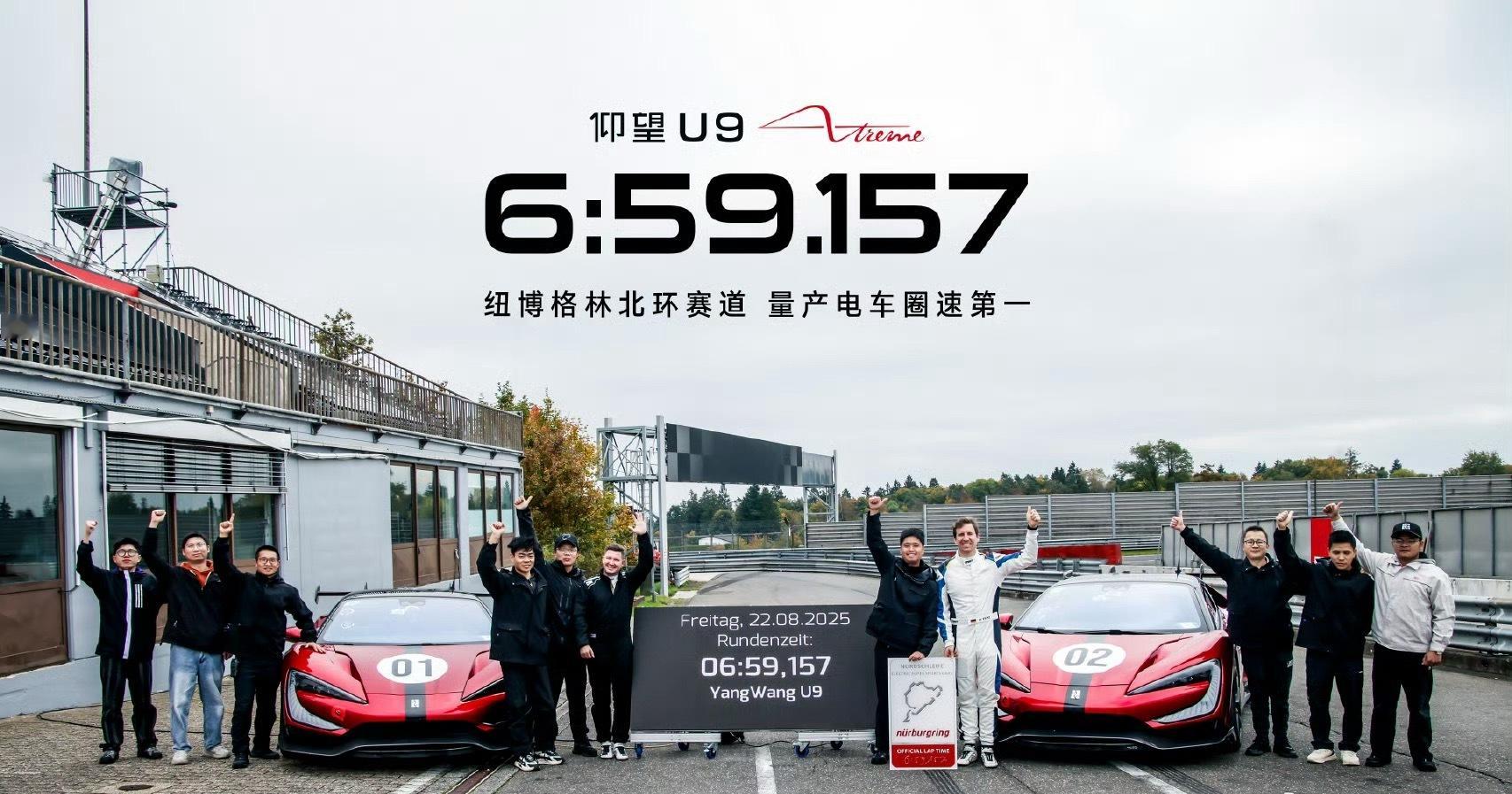 6:59.157,刷新纽北量产电车圈速纪录!仰望u9x成为全球最快汽车仰望u9x全球极速第一