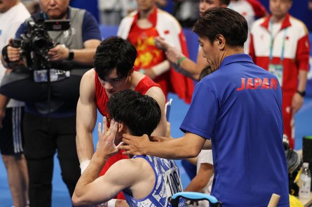 剧本的走向总是令人意外,巴黎贝尔西体育馆没有如期成为“全能双星”闪耀的舞台。桥本大辉在鞍马上的重大失误让他退出了个人全能的奖牌争夺,最终仅列第六;而张博恒在首项自由操上的低分让他在整场比赛里处于被动,最终以0.233分之差屈居日本新星冈慎之助之后,遗憾摘银。尽管双双与奥运金牌无缘,但两人在巴黎的故事仍然为体操迷们津津乐道——在男子团体决赛中,桥本完美落地后,赛场内响起了经久不息的欢呼,他却做出了“嘘”的手势,请求观众安静,为就要出场的张博恒营造专心的环境。这一幕打动了中日两国观众,散发出比成绩更耀眼的光芒。