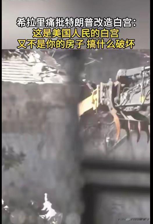 入住过白宫的人对白宫都是有感情的。特朗普这么胡搞乱搞,希拉里第1个坐不住了。 美国当地时间10月22号,前第一夫人希拉里在社交媒体上狂喷特朗普。 她表示这是美国人的白宫,又不是你的房子,你凭什么搞破坏? 希拉里说这句话还真的挺合适。 第1个她是民主党人士,天生的就应该跳出来跟共和党对抗。 第二点,她是克林顿的妻子,是曾经的第1夫人。在白宫生活过很长时间。 她是有感情的,所以她可以骂。 第3点,希拉里曾经跟特朗普竞争过总统宝座,他们两个人是有私仇的。 其实希拉里说的也没错,白宫是美国人民的共同财产,不是私人的。 特朗普如果想大兴土木,那就应该经过国会的审批。 总统只有内部装修的权利。 你可以改造一下壁纸的颜色,换一换家具什么的。 这种大型的基建对整体结构的破坏性工程。 最起码也得让国会来审批一下啊。 美国的文物保护单位也应该出来说句话呀。 可是面对权力所有人都屈服了。 其实稍微懂一些图谶风水学的人都应该知道。 这风水是不能乱改的,特朗普这么乱搞,直接影响的就是美国的国运。 你也别说这是迷信。 国运这个东西真的是挺玄妙的,不服不行啊。 怎么说这个事呢?只能送一句话,特朗普加油吧!