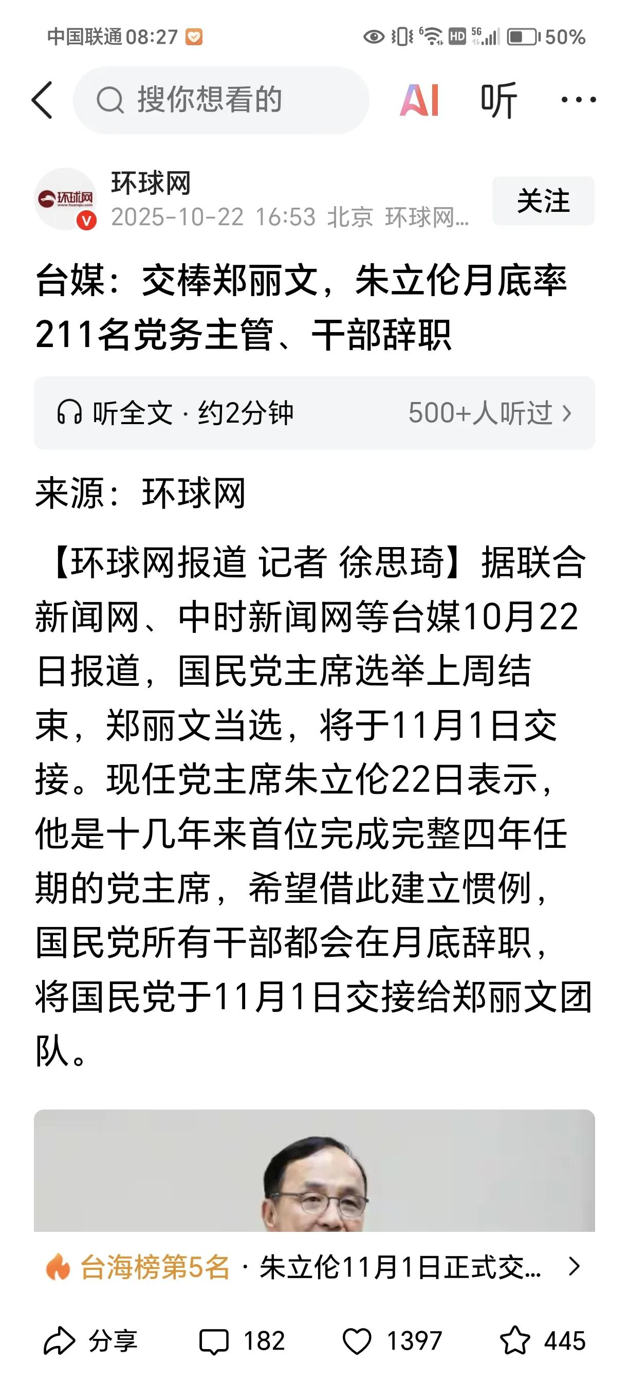 令人刮目相看的朱立伦,朱立伦一直看起来是一个暗独的人。 但是他11月1日将要辞任国民党党主席,并且带领党务干部全部辞职,这则新闻太让人刮目相看了! 由此,我认为朱立伦不愧为中华民族的好子孙!它具有良好的政治道德!对于权利地位名誉,看起来它有清醒的认识,不贪恋,不执着,没有占着茅坑不拉的坏习惯。 所谓的“知进退,知荣辱,善养浩然正气”的君子形象,不过如此而已吧!评论打卡任务