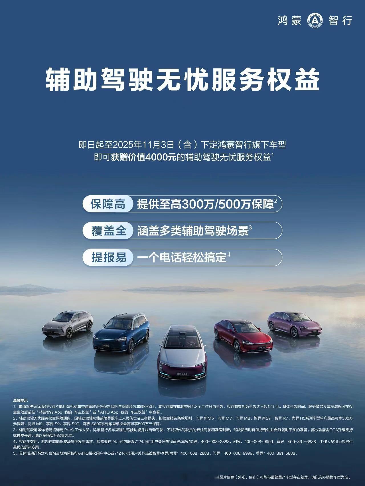 鸿蒙智行辅助驾驶无忧服务权益 来了,即日起至2025年11月3日(含)下定车型即可享受赠送[不愧是你][不愧是你][不愧是你]