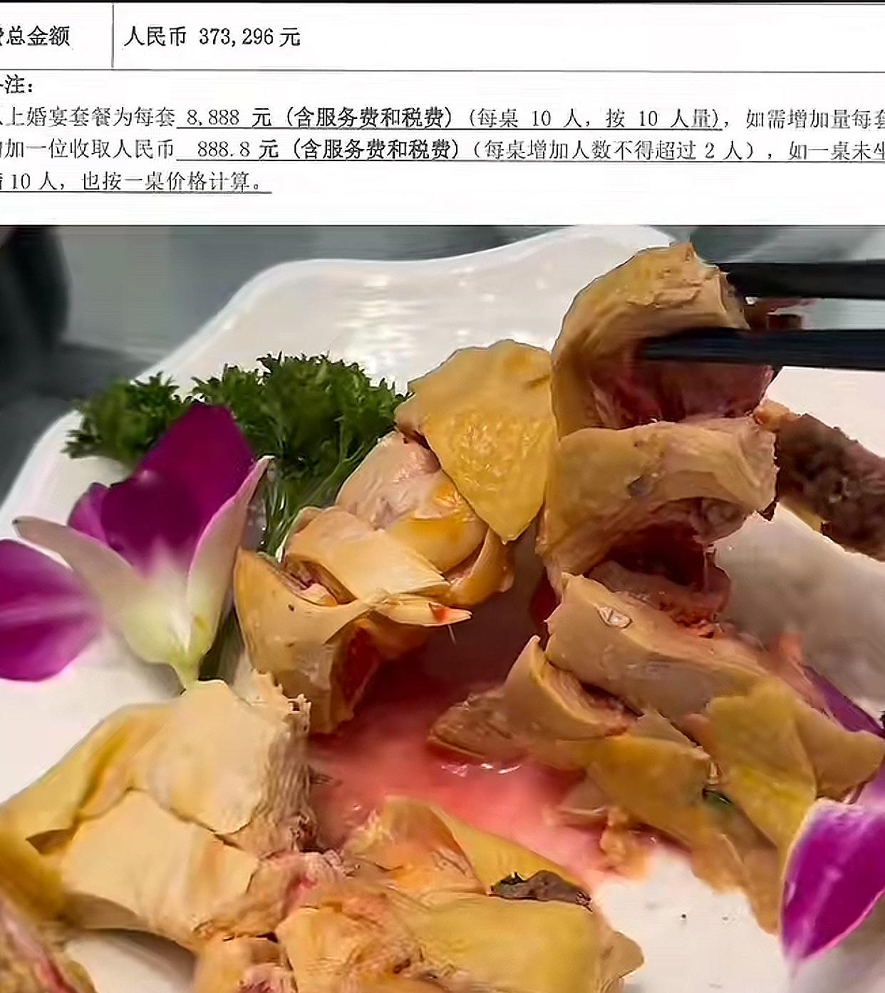 上海一位新娘这几天挺没面子,她花了将近40万,一桌8888的婚宴餐桌上不但白切鸡疑似没做熟,进到后厨之后还发现咸猪手是真空包装、面食是速冻产品、虾也不是新鲜活虾,感觉自己让来宾吃上了“沪上高端预制菜”。酒店承诺100%没有预制,都是现做,而且还给新娘发了律师函要求停止抹黑酒店。婚宴有的材料确实需要提前准备,但真空包装加热产品算不算预制,这个普通人和饭店的定义不太一样。