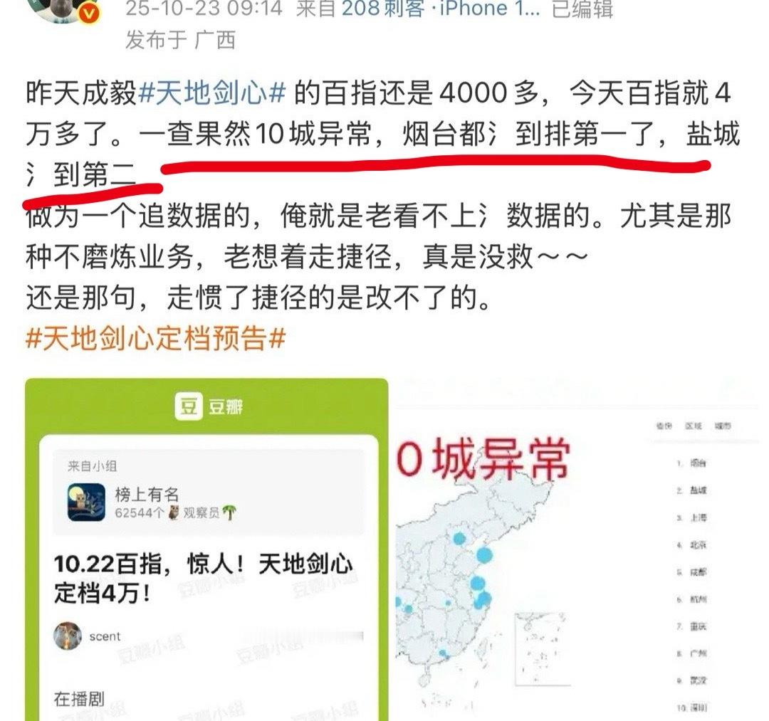 天地剑心定档日百指十城异常。[捂嘴哭]烟台盐城都超过北上广了[呵呵]