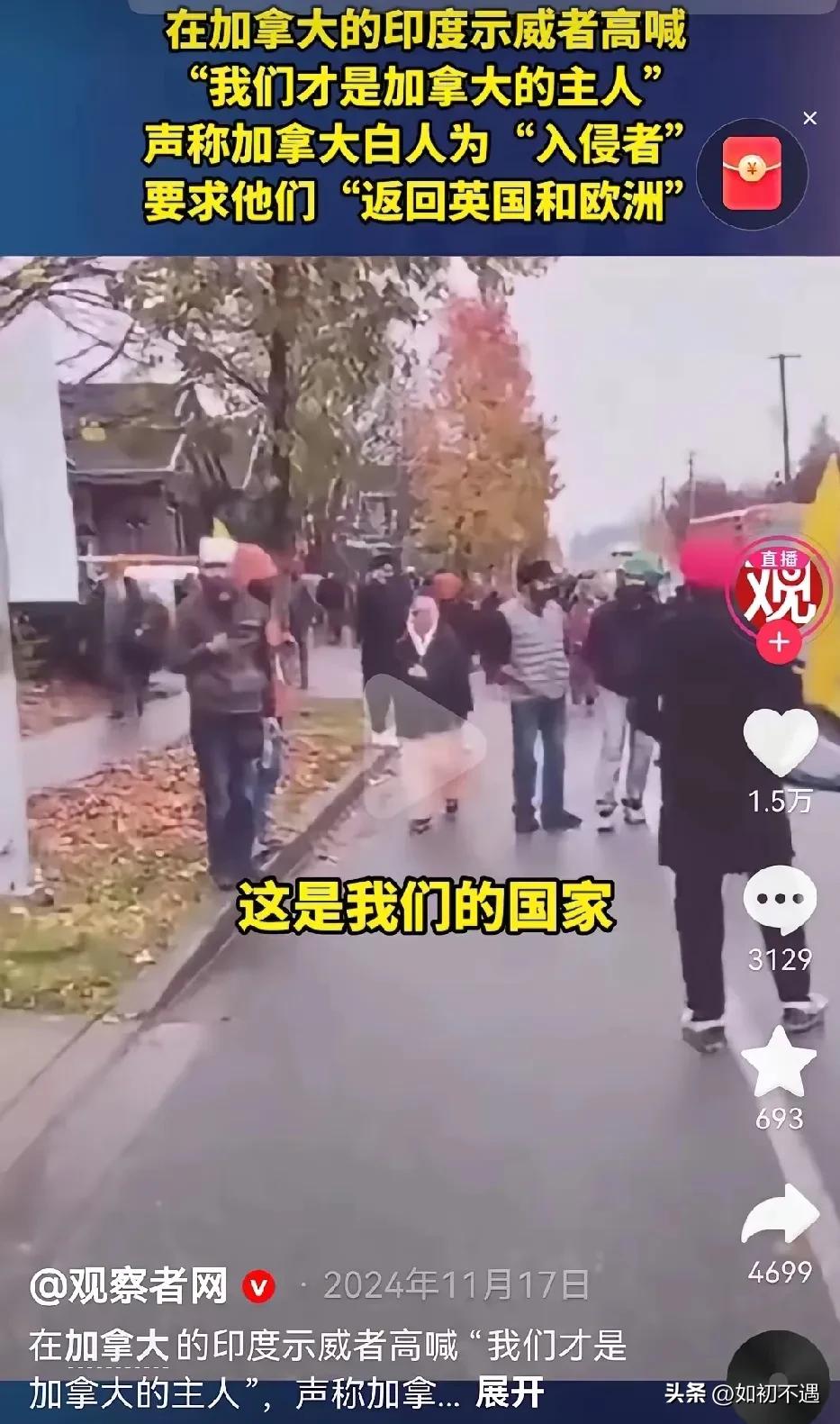 好家伙!你听听加拿大这边的动静,“白人滚回欧洲,我们是加拿大的主人”,一群印度示威者扯着嗓子高喊,那架势,仿佛加拿大已然是他们囊中之物。 三哥这操作,是要玩“鸠占鹊巢”啊!人口优势大确实不假,可就这么喊喊口号,就能把国家“据为己有”了? 这要是若干年后,地球真被印度人“占领”,那画面,想想都让人后背发凉。咱也不是歧视谁,就是觉得这事儿太魔幻。 各位读者你们怎么看?欢迎在评论区讨论。