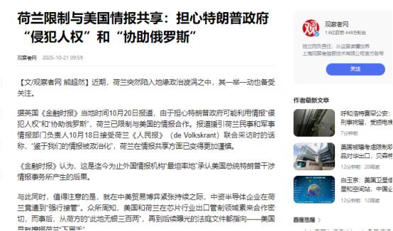 荷兰做出一个重要决定 10月20日,荷兰宣布暂停与美国的情报共享,荷兰方面给出的理由是担心特朗普侵犯“人权”和“协助俄罗斯”。 要知道,荷兰可是美国在欧洲最铁的盟友之一,两国不仅一起搞军事演习,还共享了几十年的情报。 就在上个月,荷兰还配合美国的“穿透制裁”,强行接管了中国安世半导体的全球资产,怎么突然就跟美国划清界限了呢? 2025年特朗普重新当上美国总统后,画风就跟变了个人似的。他先是公开说要跟俄罗斯总统普京“重修旧好”,还放出风声要和俄罗斯一起修一条横跨白令海峡的“普京 - 特朗普隧道”,说是要打通美俄之间的贸易通道。 更让欧洲盟友们心惊肉跳的是,特朗普在俄乌冲突上的态度来了个180度大转弯,不仅停止对乌克兰的军事援助,还施压乌克兰接受俄罗斯的停火条件。这让荷兰政府坐不住了:要是特朗普真的和俄罗斯穿一条裤子,那荷兰手里的情报不就等于直接送到普京眼皮子底下了吗? 但真正让荷兰下狠心的,还是安世半导体。今年9月,荷兰政府在美国的授意下,用一部冷战时期的老掉牙法律,强行冻结了安世半导体的全球资产,还罢免了中方CEO,把公司管理权交给了第三方托管。 荷兰本以为这样就能卡住中国半导体产业的脖子,没想到中国商务部反手就是一记出口管制,直接禁止安世半导体在东莞的工厂向境外出货。 这一下,全球汽车产业链都乱套了。欧洲汽车制造商协会警告说,要是芯片供应再断一个月,欧洲一半的汽车生产线都得停工。特斯拉在柏林的超级工厂已经开始减产,连苹果公司都担心AirPods Pro 3的发布要推迟。 荷兰政府这才发现,自己抢到手的只是一张股权纸,真正的产能和供应链都在中国手里。安世半导体全球70%的员工在中国,80%的原材料从长三角采购,荷兰本土的那点产能连样品都做不出来。 更打脸的是,安世中国发布公告说,员工工资照发,生产线照常运转,只是产品优先供应国内市场。这就相当于,荷兰费尽心机抢了个空壳子,却把自己的盟友们坑惨了。 在这种情况下,荷兰政府不得不重新考虑和美国的关系。一方面,特朗普的亲俄政策让荷兰担心情报安全;另一方面,安世半导体事件让荷兰看清了美国的真实嘴脸——所谓的“盟友”,关键时刻就是用来当炮灰的。 荷兰经济事务部部长卡雷曼斯急得团团转,一边忙着求中国恢复芯片供应,一边又想在特朗普面前表忠心,最后想出了暂停情报共享这招“两边讨好”的办法。他心里打的算盘是:既能向中国证明荷兰和美国不是一条心,又能给特朗普一个警告,别把欧洲盟友当傻子。 不过,荷兰的如意算盘能不能打响,还得看中国买不买账。中国商务部已经明确表态,要求荷兰立即纠正错误做法,否则将采取进一步措施。 更重要的是安世半导体的芯片库存最多只能维持几周,留给荷兰的时间不多了。如果荷兰不能在短期内恢复和中国的合作,不仅欧洲的汽车产业要遭殃,荷兰自己的国际信誉也将一落千丈。 这次事件也给其他国家提了个醒:在中美博弈的大背景下,盲目跟随美国搞“脱钩断链”,最终吃亏的还是自己。安世半导体的例子证明,在全球化时代,产能和供应链的实际控制权,比一纸法律文书重要得多。 荷兰政府或许该好好想想,是继续当美国的“马前卒”,还是回到正常的国际贸易轨道上来。毕竟,在这个谁也离不开谁的世界里,合作共赢才是硬道理。 来源:观察者网 【荷兰限制与美国情报共享:担心特朗普政府“侵犯人权”和“协助俄罗斯”】