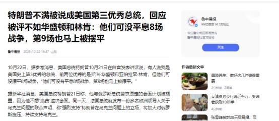 特朗普:“他们说我是美国史上排名第三的总统,我问他们为什么只给我颁发铜牌,前两位是谁,他们说是林肯和华盛顿。我对此十分不开心,要知道,要打败这两位十分困难,但我会努力去试一试,对吧?不过话说回来,他们没有平息过八场战争,好吧,我平息了八场战争,第九场也即将到来,信不信由你。” 特朗普这番言论不仅引发了对其自我认知的热议,更让总统排名与战争功绩成为焦点话题。从历史角度看,华盛顿和林肯的地位确实难以撼动。 华盛顿是美国国父,带领殖民地打赢独立战争,还主动放弃终身总统职位,为民主制度打样。林肯则在南北战争中力挽狂澜,废除奴隶制,避免国家分裂。这两位总统的贡献都是实打实的,在大多数历史学家的排名里稳居前两位。 特朗普不服气也能理解,毕竟他一直以“打破常规”自居。但他说自己平息了八场战争,这事儿就得好好掰扯掰扯。 先看看他说的“战绩”:印度和巴基斯坦边境冲突、泰国和柬埔寨边境摩擦、以色列和伊朗的代理人战争……这些冲突确实都消停过,但基本都是短期停火,而且背后有联合国、东盟等国际组织在斡旋。 比如泰柬冲突,是马来西亚牵头谈下来的,特朗普顶多打了几个电话施压,就把功劳全算自己头上了。还有印度和巴基斯坦的停火,印度政府压根没承认他起了作用。更搞笑的是,刚果(金)的冲突前脚停火,后脚就死灰复燃,特朗普的“和平成果”比泡面保质期还短。 再说说他正在努力的“第九场战争”——俄乌冲突。特朗普倒是挺积极,又是和普京打电话,又是拉乌克兰总统泽连斯基谈判,还提出“冻结战线”的方案。 可问题在于,俄罗斯想要的是顿巴斯地区的控制权,乌克兰又死活不愿意割让领土,两边根本谈不拢。特朗普夹在中间两头受气,连原定的美俄峰会都因为俄罗斯拒绝停火而搁置了。更尴尬的是,他前脚说乌克兰不可能赢,后脚又说“战争什么都可能发生”,立场比六月的天气还善变。 特朗普这么爱“蹭战争热度”,其实是想给自己贴金。他心里清楚,总统排名这事儿,光靠修墙、减税这些政绩不够看,得整点“大动静”。 但他可能忘了,战争不是儿戏,更不是他个人秀场的道具。就拿他引以为傲的“中东调停”来说,表面上看是平息了冲突,实际上埋下了不少隐患。比如他在以色列和伊朗冲突中偏袒以色列,结果导致中东局势更加紧张,连诺贝尔和平奖评委都看不上他这一套,今年的奖项直接颁给了委内瑞拉反对派领袖。 从民调数据来看,美国老百姓也不太买他的账。最新民调显示,特朗普的支持率跌到了38%,创下第二任期新低,超过六成民众反对他的关税政策。 这说明啥?说明美国人更关心油价会不会涨、超市里的面包贵不贵,而不是总统又在哪场战争里刷存在感。再说了,特朗普所谓的“战争功绩”,很多都是靠威胁、施压换来的,这种“霸道总裁”式的外交手段,短期内可能有效,但长期来看只会损害美国的国际形象。 当然特朗普也不是完全没干成事儿,他在任期间确实促成了一些贸易协议,也推动了中东部分国家的关系正常化。但这些成绩和华盛顿、林肯比起来,还是小巫见大巫。华盛顿建立了美国的政治框架,林肯拯救了联邦,而特朗普呢?他更像是一个“政治网红”,擅长制造话题,却缺乏真正的历史深度。 现在的问题是,特朗普越想证明自己,越显得心虚。他在联合国大会上滔滔不绝讲了57分钟,把联合国批得一无是处,却拿不出实实在在的和平方案。他在社交媒体上自称“和平缔造者”,却被媒体扒出所谓的“调停”大多是空头支票。这种“雷声大雨点小”的做法,不仅让国际社会看笑话,也让美国在全球治理中越来越孤立。 历史是公正的,总统排名不是靠自吹自擂就能上去的。华盛顿和林肯的地位,是用实实在在的贡献换来的,而特朗普想要超越他们,还得拿出点真本事。否则,他可能永远只能在“最具争议总统”的榜单上徘徊,而不是“最伟大总统”的行列。 来源:鲁中晨报 【特朗普不满被说成美国第三优秀总统,回应被评不如华盛顿和林肯:他们可没平息8场战争,第9场也马上被摆平】