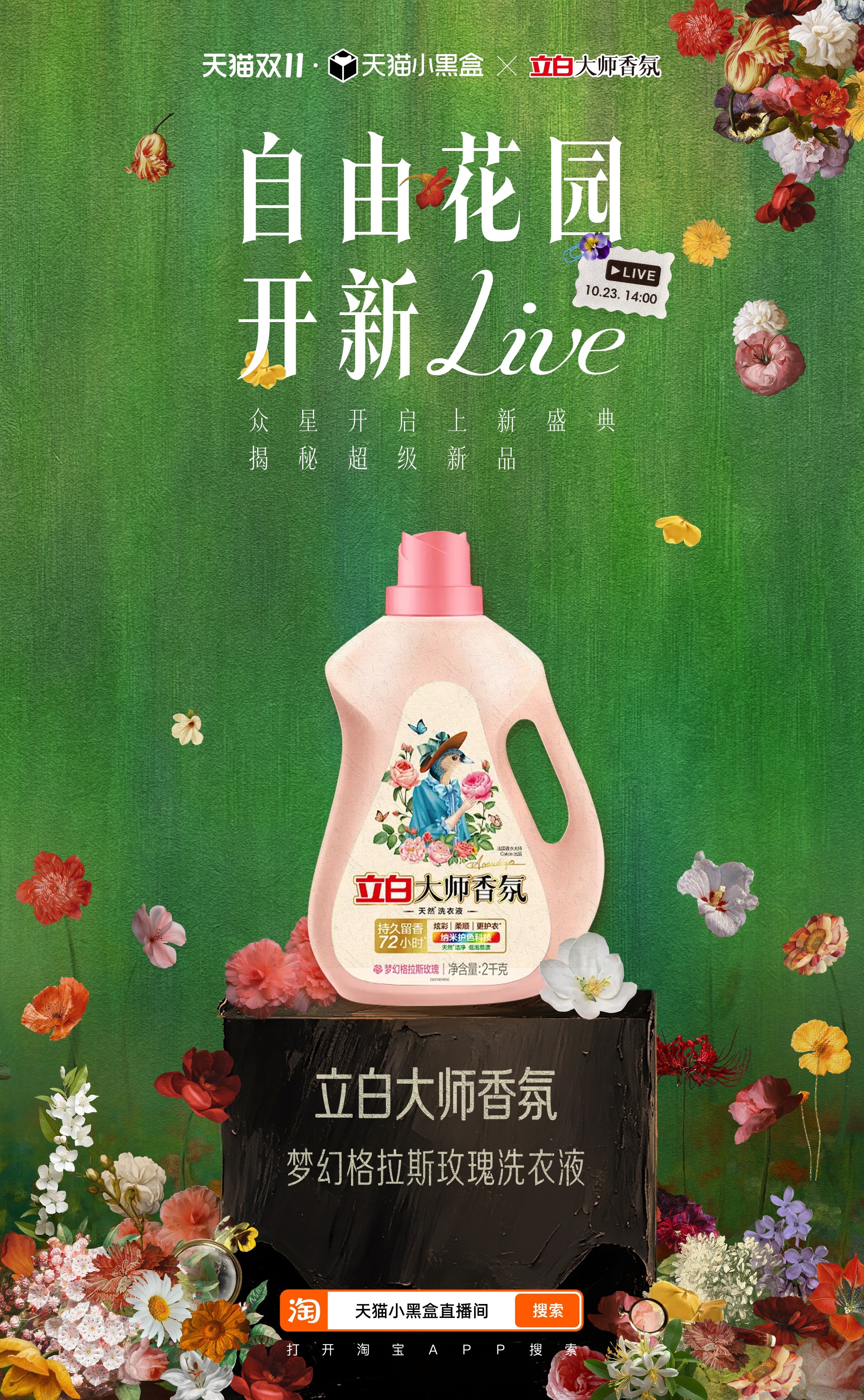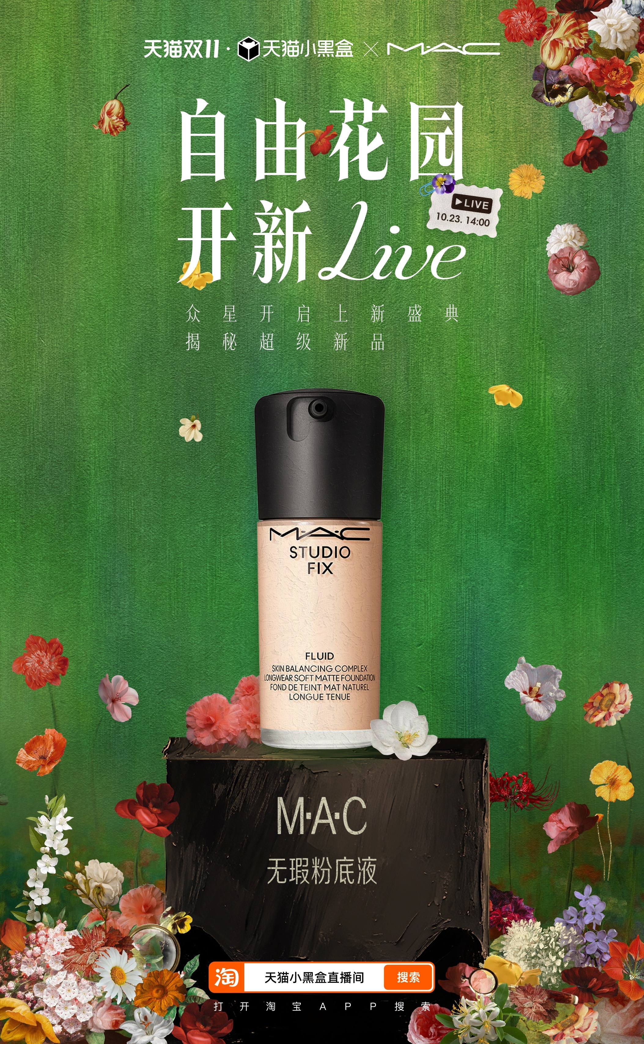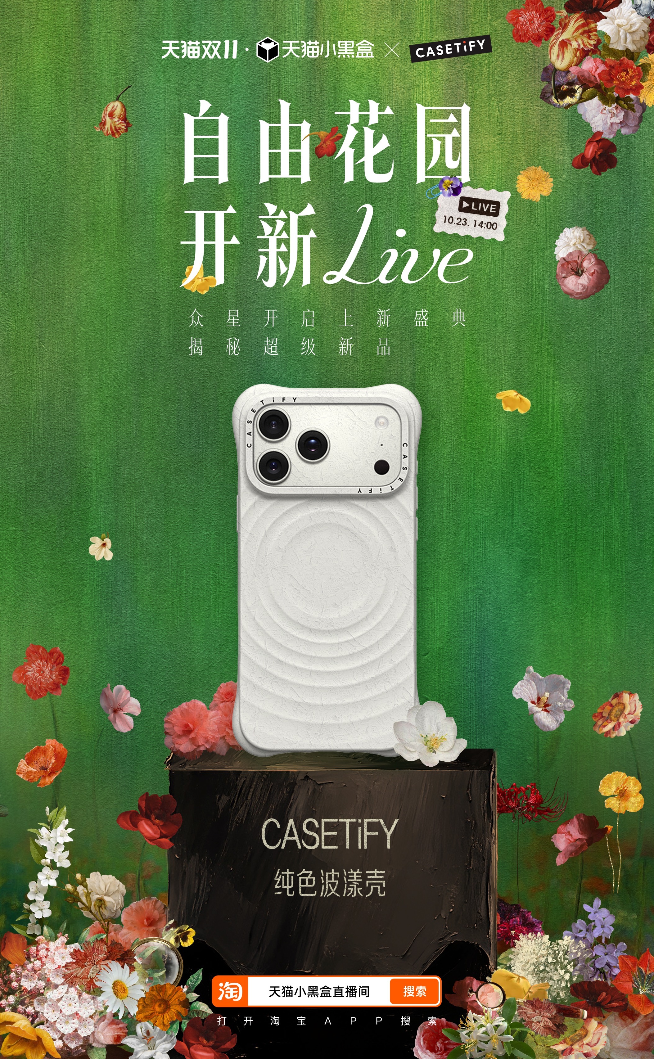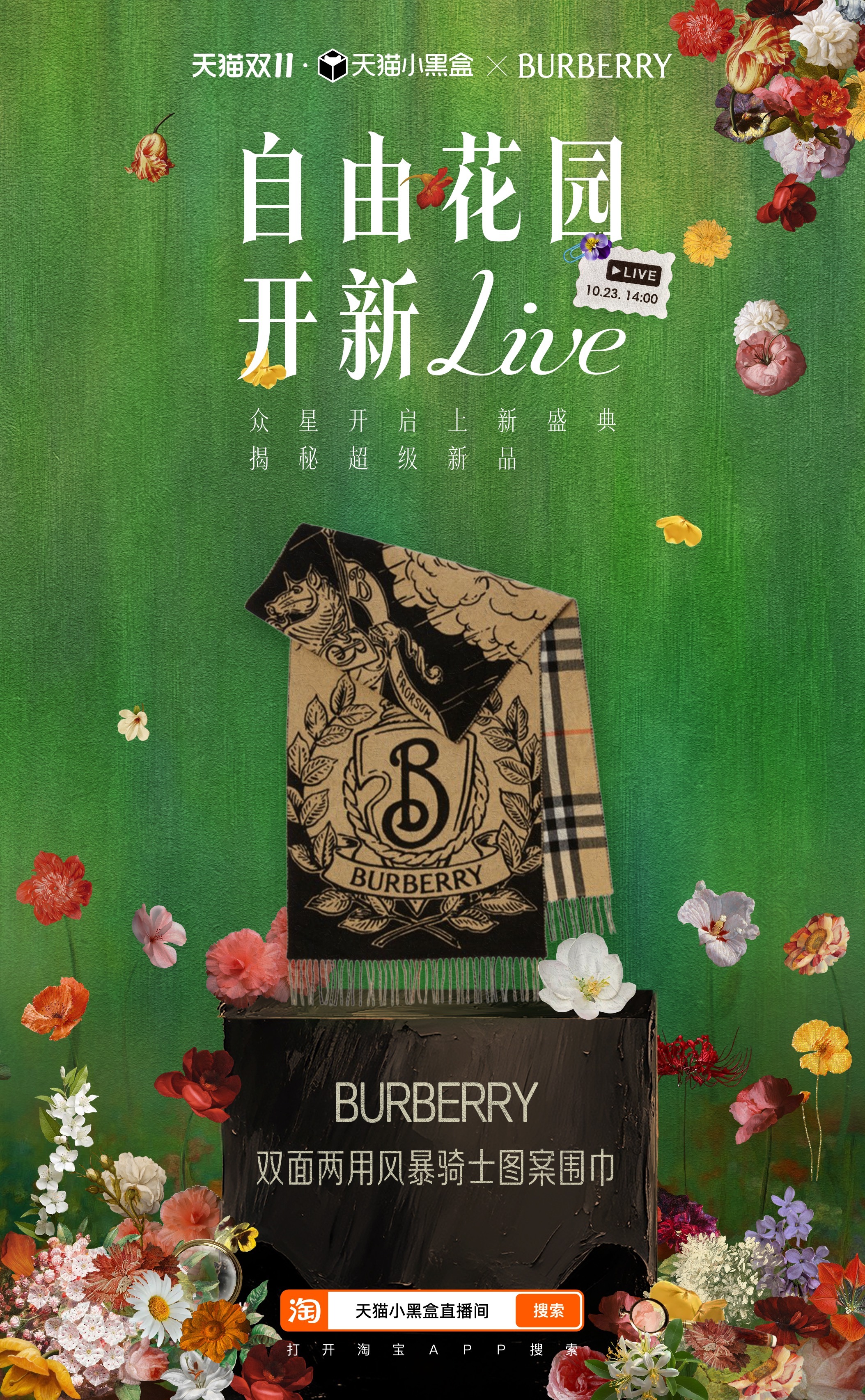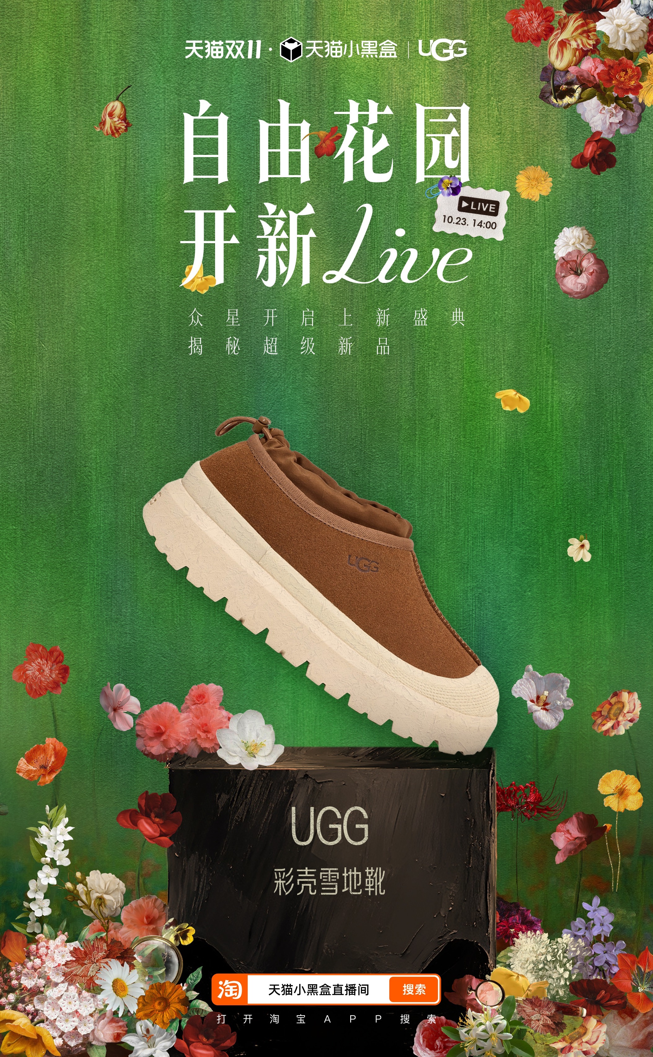 天猫小黑盒携手 Vogue梦幻跨界,以时代为轴,以花喻人,共同带来一场花园中的年度盛宴,首席超凡守护合作伙伴金领冠、首席时尚穿香合作伙伴立白, 及华为、美力城、OPPO、人头马、小米、HOKA、BURBERRY、CASETiFY、自然堂、MAC、UGG、至本携超级新品亮相助力,让这场盛会时尚与惊喜并存,今天下午14点锁定直播看繁花盛放,并参与「万元免单」,把惊喜好礼带回家!!天猫双11上新盛典抢万元免单天猫双11上新盛典
